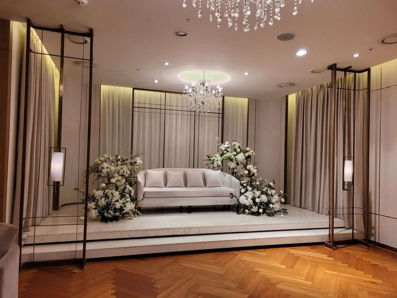 생각보다 가성비 좋은 웨딩홀! 테크노마트안이라 들어오는 입구에따라 조금 이런곳에 웨딩홀이? 싶은 부분이있지만 신부대기실도 예쁘고 버진로드도 길어요~ 다만 홀에 기둥이있어 약간 막혀있는 느낌이나며 층고 또한 낮습니다. 아쉬운부분이 없는건 아니지만 전체적으로 무난하니 가성비가 좋습니다. 홀분위기 : 보통♥ 깔끔하고 이 주변 다 같은업체라 비슷비슷합니다. 층고가 낮지만 버진로드가 길어 주목받기엔 좋을것같습니다. 다만 신부측에 기둥이있어 조금 아쉬웠어요 음식 : 추천♥ 하객으로 방문했을때 먹어봤는데 맛있다는 소문난것만큼 괜찮았습니다. 연회장분위기는 쏘쏘해요. 서비스 : 추천♥ 친절함보다는 공장느낌의 설명이였지만 전반적으로는 잘 해주시려고 노력하는게 보였습니다. 가성비가 좋은 웨딩홀같아요