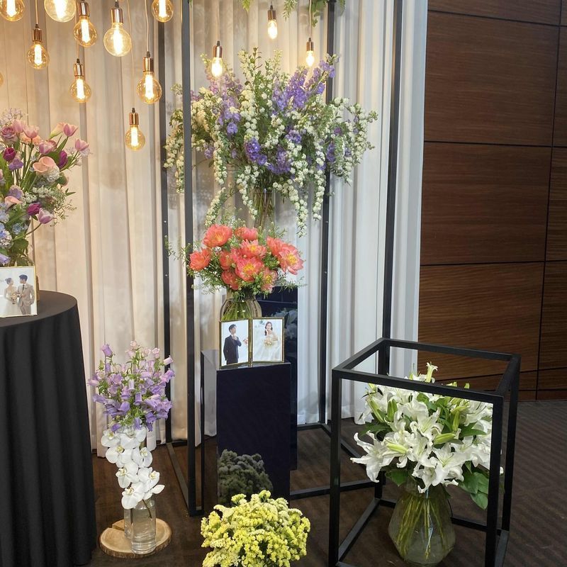 어두운 홀에 깔끔한 장식 좋아하시면 추천드려요! 포토테이블이 다 생화로 꾸며져 있어서 예뻐요ㅎㅎ 가격이 넘 비싸긴 하지만..ㅠ 연회장도 넓고 깔끔한데 홀 분위기가 저희가 원했던 느낌과 달라서 최종 선택은 안 했어요! 홀분위기 : 보통♥ 홀은 진짜 넓고 커요! 좌석에 단차가 있는 것도 신기했고 버진로드가 내리막으로 되어있는 것도 신기했어요ㅎㅎ 전체 다 생화 장식이 엄청 인상 깊었는데 생화 향 너무 좋고 예뻤지만 뒤쪽에 공간이 넓어서 그런지 제 눈엔 좀 휑해보이는 느낌이었어요ㅠㅠ 웨딩홀이라기 보다는 세미나장..? 같은 느낌이 세서 아쉬웠습니다! 음식 : 추천♥ 메뉴 구성은 진짜 최고.. 사시미도 즉석에서 떠주시고 종류도 많고 첫 예식 있을 때 상담한거라 깔끔하게 세팅되어 있는 거 보니까 정갈하니 어르신들이 좋아할 것 같았어요 타임별로 연회장이 구분되어 있어서 하객 섞일 일도 없고 좋을 것 같더라고요! 식사를 중요하게 생각하는 분들에겐 추천해요! 서비스 : 추천♥ 이날 벚꽃 행사 때문에 차 막혀서 좀 늦었는데 예약실로 전화 연결이 안 되더라고요 조마조마 했는데 늦었는데도 잘 상담해 주셨어요ㅎㅎ