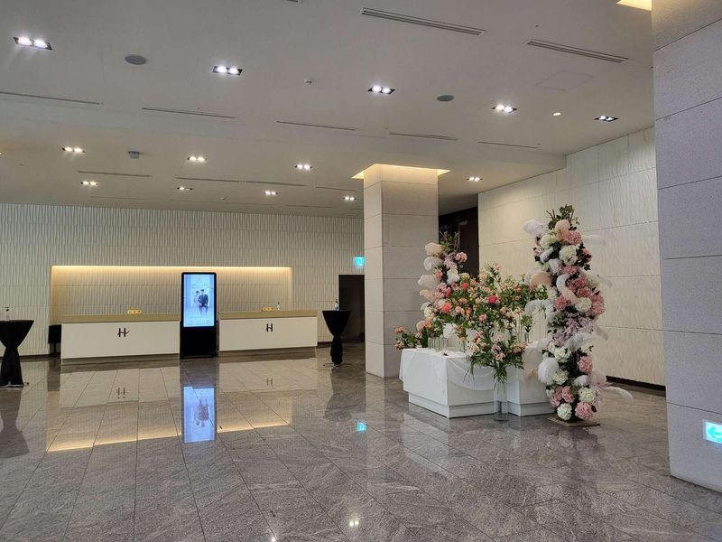 포토테이블이 정말 화사하게 생화로 꾸며진 반면 신부대기실은 조화만 있어서 당황했네요 그래도 예쁘고 쾌적해서 좋습니다 홀분위기 : 추천♥ 웨딩홀이 확실히 단독홀이고 호텔 내부에 있는 그랜드볼룸이라 넓습니다! 확실히 가본 웨딩홀중에 가장 웅장하고 천고도 높고 로비도 크도 다 컸어요. 쾌적하게 로비에서 접수할 수 있을거같고, 호텔식이라 그런지 생화장식이 어마어마해요. 음식 : 보통♥ 음식은 코스요리로 나오는데 상담실장님이 태블릿으로 보여주셨어요. 다른 코스요리 보다 더 예쁘게 나오는 듯 합니다 서비스 : 보통♥ 친절하게 설명해주시고 버진로드도 직접 걸어보게 안내해주셔서 홀 분위기 파악에 더 도움이 많이 되었어요. 서비스는 성수기나 비성수기간 가격 혜택이 없고 요일간에도 혜택이 크게 없습니다. 오히려 성수기에 황금시간대에 하신다면 이득일 수 있을거같어요. 1차 견적가와 최종 현장방문 견적가가 크게 차이가 없었습니다!
