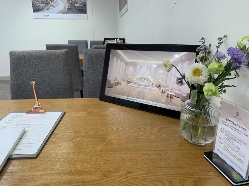 첫 예식이 7월 중순이라 하여 아직 완공된 상태는 보지 못했지만, 새로 오픈하는 예식장이라 기대가 된다. 멀리서 오는 하객들이 있어 예식 전후로 근처 공원에 편히 있을 수 있을 것 같은 기대가 있다. 주차는 꼭 서측으로 들어와야 무료주차가 가능하므로 하객들에게 꼭 알려줄것! 다만 완공되지 않아 실물을 보지 못한채 결정해야하는 비용이나 혜택이 그리 크지는 않다고 생각된다. 이 외에 주차는 900-1000대 정도 가능하여 걱정은 없고, 연회장에 혹시 하객이 겹칠 가능성이 있다는 아쉬운 점. 그 외에는 모두 만족! 홀분위기 : 추천♥ 내가 방문했을 때는 아직 공사중이긴했지만 투시도는 마음에 들었고 도면상으로 공간의 배치등은 약간 아쉬움이 있었다. 연회장과 홀이 모두 같은 층에 있어 편리하지만 연회장을 같이 사용한다는 아쉬움이 컸다. 그래도 근래 본 웨딩홀 중에 홀의 층고와 폭이 가장 컸던거 같다. (내가 방문했던 웨딩홀 기준) 음식 : 추천♥ 같은 계열사의 맛이 이미 보증되어 있어 기대할만하다. 상담팀 직원분도 자부심 있게 추천해주셨다. 서비스 : 추천♥ 매우 친절하고 예비부부가 준비하는 입장에서 같이 공감해주시고 말씀해주신다.