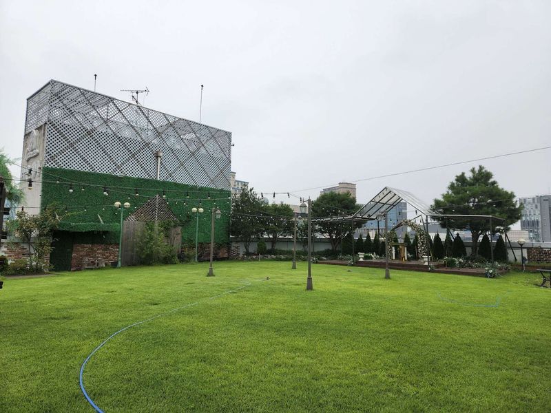 8층에는 예식 손님분들이 있어서 찍은 사진은없고 옥상에 올라가봤는데 푸릇푸릇하고ㅠ여기서 잠깐 사진타임도 가질수있다 하여 구경다녀왔습니다. 진짜 예식있을때 사진 보니까 꽃장식하고 너무 이쁘더라구요 :) 홀 분위기도 어둡지만 푸릇푸릇한 느낌이라 좋았고 혼주분들 헤어메이크업 다 한층에 있어서 좋더라구요 가족분들 다른층 가서 준비하시는거보다 심적으로 편한 느낌..! 홀분위기 : 추천♥ 조명이 제일 마음에 들었어요 :) 저는 컨벤션 스타일보다 하우스웨딩느낌을 좋아해서 조금이라도 하우스느낌 나는부분이 좋았습니다 :) 기둥이 혼주석 바로 뒤에 있어서 많은부분이 가려지는게 아쉬웠습니다ㅠ 음식 : 추천♥ 130여가지의 메뉴가 있고 좋았습니다 :) 서비스 : 추천♥ 진짜 너무 친절하세요! 상담해주시는분도 어렵지 않게 잘 해주시고 기분좋은 상담이였습니다!