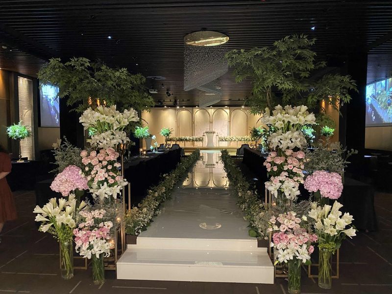 버진로드가 대리석으로 되어 있어서 사진찍었을 때 예쁠것 같아요!! 신부대기실도 고급지고 예뻤는데 로비를 지나 홀로 가야하는 점이 아쉬웠습니다ㅜㅜ 홀분위기 : 추천♥ 로비 크기도 넓어서 하객들이 많이 붐빌거 같지 않아요. 홀자체 크기도 넓어 보였습니다. 방문 때 예식 진행중이었는데 커튼 뒤로 신부가 입장하는게 너무 예뻤습니다! 음식 : 보통♥ 연회장이 굉장히 넓었고 음식도 맛있게 보였어요! 서비스 : 추천♥ 상담해주신 직원분이 굉장히 친절하였습니다!