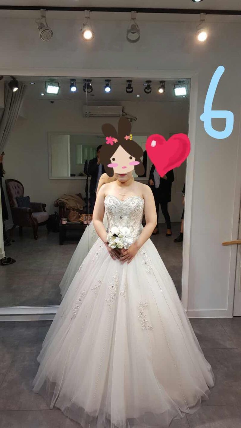 정말 본식 드레스는 비즈감도 더 있고 이뻤는데 사진을 찍지 못했네요 ㅎㅎ 촬영 드레스도 너무 많아서 고르기 힘들었어요 ~~ 본인에게 맞는 걸로 가져다 주신답니다 드레스 실장님들을 믿어 주시는 것도 좋을 것 같아요 ~~ 스타일 : 추천♥ 드레스 스타일도 다양하고 샵도 이뻐요 ~~ 옷상태 : 추천♥ 드레스투어때 본식 드레스 너무 이뻐서 결정했습니다 촬영 드레스는 상태가 완전 굿은 아니었지만 어짜피 촬영이다보니 사진으로는 이쁘게 나왔어요 ~~ 다양한 드레스 라인이 있어서 입고 싶은 것 이야기 하면 꺼내 주시더라구요 ㅎㅎㅎ 서비스 : 추천♥ 너무너무 친절하셨어요 ~~ 옷도 여러벌 입혀 주시고 촬영드레스 6개 빨리 입어봤는데 하나가 맘에 들지 않아서 하나만 딱 더 입어 보고 싶다고 해서 총 7벌 입어봤어요 ~ 넘 이쁘고 웨딩촬영 사진도 이쁘게 나와서 만족하고 있답니다 TIP : 미리 자신에게 어울리는 스타일을 생각하는 것도 좋지만 웨딩샵에서 맞춰주는 것도 이쁜 것 같아요 저는 미카도 실크 생각했는데 그것보다 전 화려하고 비즈감 있는 게 훨씬 이쁘더라구요 ~~ 본인 스타일만 고집하시기 보다는 샵에서 권유하는 것도 1-2벌 정도 입어 보시는게 좋을 것 같아요 ~~