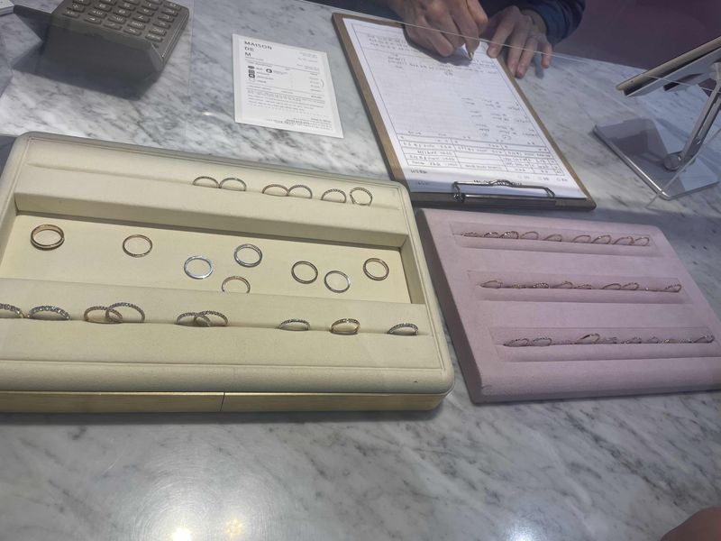 가드링 맛집이라는 소문을 듣고 다른곳 비교도 할생각으로 제일 처음 방문했어요 저희 예물반지 부쉐론 과 같은 반지 사이즈 다르게 해서 보여주셔서 같이 비교 가능해요 그래도 본인 사이즈 꼭 가져가셔서 비교하세요 단차가 있기때문에 꼭 필요합니다 종류 진짜 다양하구요 백화점 매장에서 본거 똑같아요 가드링 착붙!! 디자인 다양하고 원하는 다이아 풀로 돌리는것 까지 가능합니다 다른데 갈필요 없어요 여기예요!!!!!!!!! 종류 너무 다양하구요 오히려 너무 많이 보여주셔서 저는 고민하는데 오래걸렸어요 4발물기, 터널링 원하는거 색상 다있어요 부쉐론 가드링 똑같이 원하시면 바로 검색해서 찾아드립니다 저 고민하다가 두개 맞췄어요 !! 가격도 착해서 신랑이 팍팍 밀어줬답니다^^ 정찰제에 해피아워, 지인할인 당일혜택 다양하게 있어서 친절히 다 알려주세요 미리 예약해서 가시면 절대 후회 없으실거예여 부담스럽게 강요 안하시구요 충분히 시간도 주시니 끼고싶으신거 다 껴보시고 결정하셔도 된답니다 왜안해요 메종드미 가드링 여기예여 여기!!!!!! #가드링맛집 #메종드미 디자인 : 추천♥ 처음엔 원하는 디자인 있을까 진짜 고민 많았어요 걱정마세요 다있어요 당신이 원하는 그것!!!!!!! 품질 : 추천♥ 인터넷 정보의 바다 얼마나 검색하고 갔는지 몰라요 종류 다양하고 친절히 설명해주세요 사발물기, 터널링 , 전체 다이아 두른거 찾고있었어요 다 됩니다 다이아 종류도 가격에 맞게 선택하실수 있어요 서비스 : 추천♥ 절대 부담스럽지 않게 해주시고 원하는거 고를때까지 충분히 시간도 주시구여 설명 알아들을때까지 잘 해주세요 잘 모르고 가셔도 걱정마세요!!!