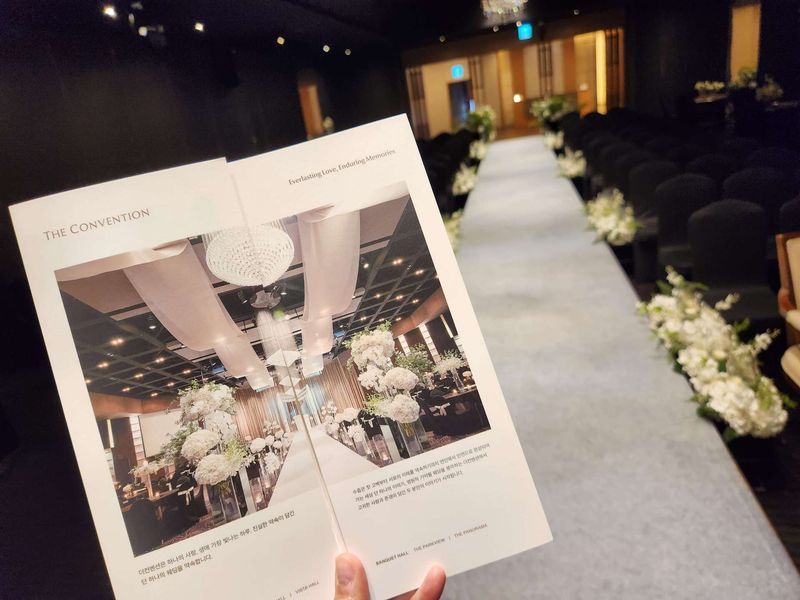 아모르홀이 가장 마음에 들었어요. 다른게 아니라 단지 하객이 식사할때 기분이 좀 더 좋을것같다는 이유에서요ㅎ 아쉬운점은 예식간격이 너무 짧아서 정신이없을것같더라구요ㅜ 양쪽 하객분들이 모두 서울에서 오시면 크게 문제되진 않을것같은데 저희는 지방 멀리서 오시는 손님들이라 마음 급하게 모시고싶지않아서 최종선택하지 않았어요. 홀분위기 : 추천♥ 건설회관 외관이 빨간벽돌이라 사실 크게 기대하지 않았는데, 내부는 세련되고 깔끔해서 좋았어요. 개인적으로는 아모르홀, 비스타홀, 그랜드볼룸 홀 모두 맘에 들었고, 어두운 분위기로 스포트라이트받기 좋겠어요 음식 : 보통♥ 예전에 하객으로 방문한적 있는데 맛있었어요. 다만 지하 1층은 뭔가 정신없는 느낌이 좀 있고, 그래서 12층 뷔페를 단독으로 쓰는 아모르홀이 좀 더 좋을것 같은 느낌이에요. 서비스 : 보통♥ 예약은 4시였고 방문한게 3시좀 넘어서였어요. 일찍 도착했으니 둘이서 알아서 홀 구경하라고 하셔서 홀 구경했고, 정작 앞타임 밀려서 상담받은건 오후5시.. 퇴근시간 다되서 그런지 상담해주시는 분이 거의 래퍼수준으로ㅋ엄청 급하게 하셔서 뭐 많이 여쭤보진못했어요;;