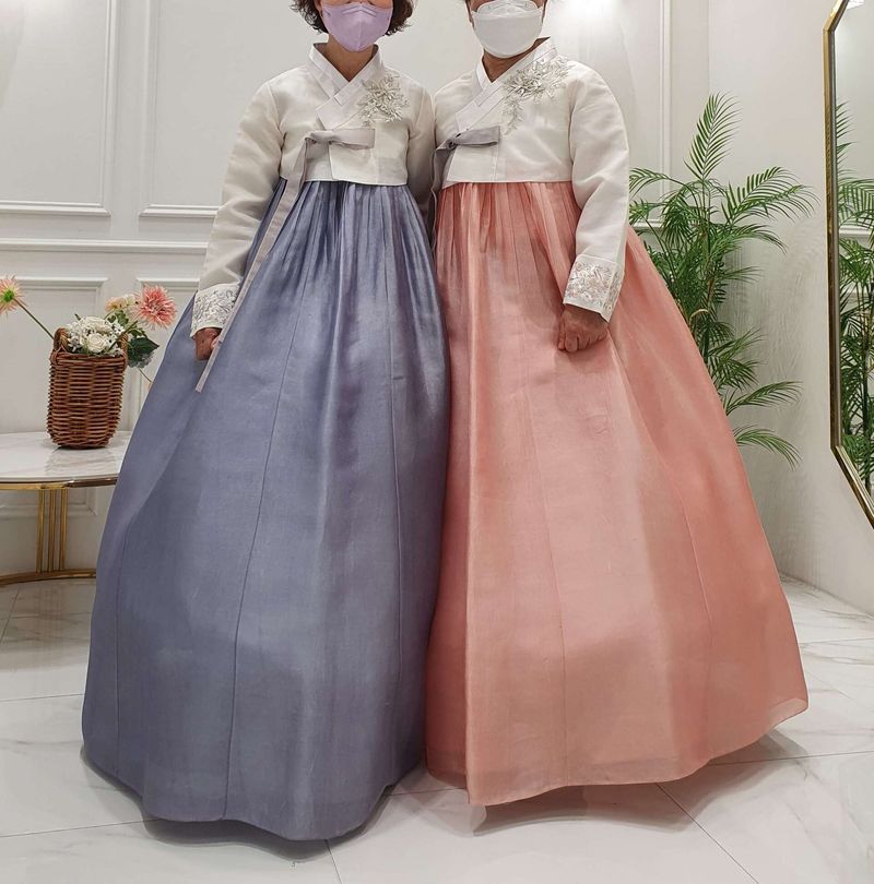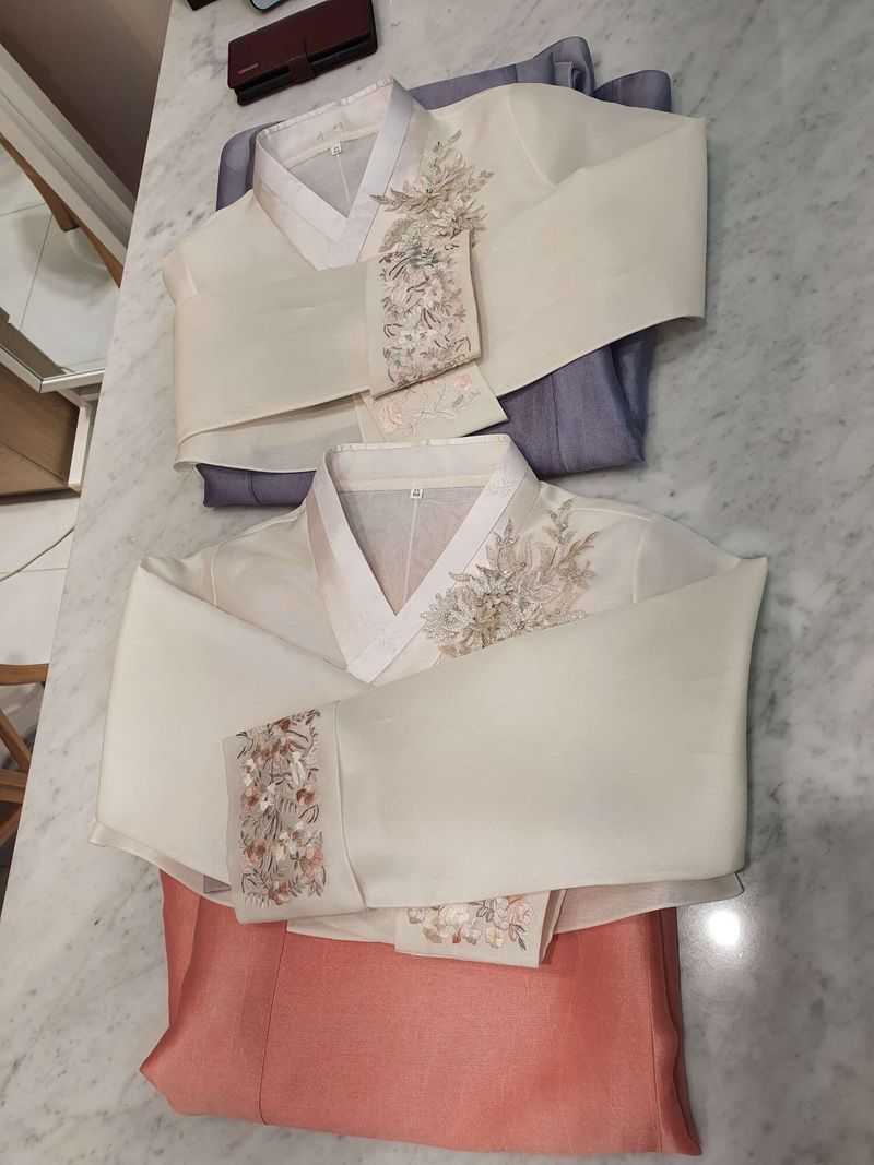 12월 예식입니다. 상담을 자세히해주세요. 어머님들 스타일과 요즘 트렌드를 잘 섞어서 반영해주셨어요. 단아한 느낌으로 잘 고른것 같아요. 조명에따라서 센 빛을 받을때, 로비같이 그냥 조명일때, 어두울때 사진찝으면 어떤 느낌인지 다양하게 보여주셨어요. 스타일 : 추천♥ 충분한 시간동안 경험을 토대로 상담을 잘해주세요. 밝은 분위기였어요. 의견을 잘 반영해주세요. 한복이 고급적인대도 대여비 가격이 참괜찮아요. 다양한 한복이 많았어요. 품질 : 추천♥ 원단이 고급지고 마음에 들어요. 빛에따라서 은은하게 도는 빛이 예뻤어요. 서비스 : 추천♥ 어머님들의 스타일을 파악하시고 요즘 유행스타일을 반영해서 깔끔하고 우아한 스타일로 골라주셨어요. 조명별로 약간 어두운 곳에서, 밝은 곳에서, 환한곳에서 모두 보여주셔서 참고하기 좋았어요. 브로치 크기가 조금더 다양했으면 좋았을것 같기도 하지만 마음에 드는것을 골랐어요.
