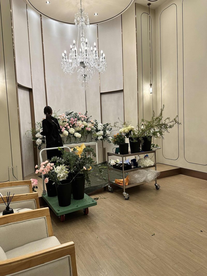 사진 순서대로 5층 2층 신부대기실부터 홀 사진이에요 제가 방문했을때는 이제 막 꽃 장식하고 있었고 2층 신부대기실은 리뉴얼한지 얼마 안돼서 인터넷에 올라온 사진이랑 다르게 샹들리에로 변경 되어서 더 이뻐서 2층으로 계약했어요! 주차는 그날 대중교통을 이용하느라 잘 모르겠네요 재방문시 주차장 이용해봐야겠어요 홀분위기 : 추천♥ 2층 5층 두개 홀이 있는데 정말 둘다 분위기가 정 반대에요 2층은 내가 이렇게 화련한 걸 좋아했었나? 싶을 정도로 화려하고 예뻤고 5층은 따뜻한 분위기의 딱 채플 형식이였어요 음식 : 보통♥ 평일에 가서 잘 모르겠어요 나중에 시식해보려고요 서비스 : 추천♥ 금요일 오후에 가서 그런지 손님이 없어서 여유롭게 설명해주시고 저를 담당해주셨던 분이 호탕하셔서 그런지 마음편하게 구경했던거같아요