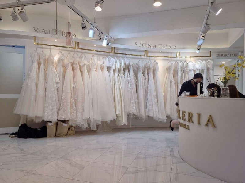 샵에 입장하자마자 드레스가 진열되어 있는게 보여서 정말 화사하고 예쁜 샵이라는 느낌을 받았어요. 미녀와야수에 나오는 '벨' 느낌의 드레스가 특히 예뻤고, 그런 분위기의 옷을 찾게되더라구요. 전반적으로 화려하기보다는 청순하고 우아한 느낌이었어요. 직원분들도 엄청 친절하고, 방문하기 전날 문자 안내도 해주시고, 굳이 부탁하지 않아도 알아서 피팅비 현금영수증도 먼저 해주셨어요. 스타일 : 추천♥ 청순한 느낌이고 특히 오프숄더가 예쁜 곳에요. 옷상태 : 추천♥ 오프숄더 드레스가 특히 예쁜게 많았고, 머리장식이랑 베일도 정말 화려하고 다양했어요. 서비스 : 추천♥ 실장님, 직원분들이 너무 과하게 칭찬을 해주셔서 너무 부끄러웠어요. 뒷모습까지 볼 수 있게 손거울 주신건 여기 밖에 없었어요. 티아라나 헤어장식도 다양하고 드레스와 세트로 베일이 제작되어 엄청 화려하고 예뻤어요.