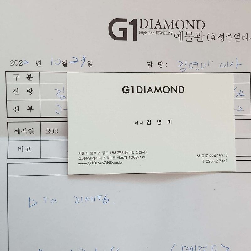 g1다이아몬드 예물 리뷰 - 김영미 이사님 왕 추천 드려요 | 웨딩북