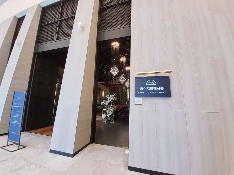 페이지웨딩은 총 2개의 홀이 있는데 식장은 총 6층으로 구성되어있으며 2층과 6층에 단독홀이라 굉장히 넓다 신부대기실은 큰 통유리창이 있어 더 넓어보이고 신부 전용의 큰 화장실이 옆에 있어서 편할꺼같다 야외홀도 있어서 파티라 돌잔치 소규모웨딩에도 이용할수있다 홀분위기 : 추천♥ 6층 클래식홀은 가든느낌으로 꽃장식이 풍부해서 화사해보였고 높은 층고와 적당한 높이의 버진로드와 그리고 하객석이 안락한 의자로 되어있어 편안한 느낌을 주었다 음식 : 추천♥ 요리부가 많아서 다채로웠고 무엇보다 고기의 품질이 좋은듯했다. 회 부분은 많지않아서 아쉽다. 그리고 맥주도 셀프로 되어있어 편할꺼같다 피로연장 바깥이 보이도록 통유리창으로 되어있어서 식사하는동안 답답한 느낌없이 좋은 느낌을 준다 서비스 : 추천♥ 시식을 예약하지않았는데 식사를 할수있게 해주셨고 무엇보다 웨딩홀에 대한 자부심이 대단한것같아 마음에 들었다 엘리베이터는 물론 전층 에스컬레이터로 되어있다는점이 하객들로 복잡할수있는 웨딩홀의 단점을 보완해주었다. 방문시 발렛서비스, 주차안내가 매끄러워서 편리하다. 주차장도 넓고 셔틀버스가 상시운행한다는 점도 장점이다