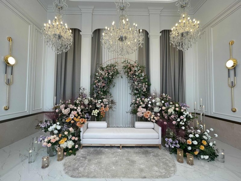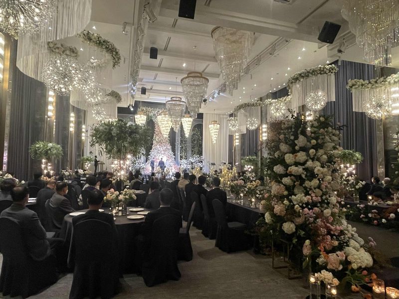 오픈 전 프로모션으로 조감도만 보고 계약하고 오픈한뒤 가봤는데 생각보다 웅장하고 더 멋있었어요. 엄청 큰 샹들리에와 꽃무더기가 압도적으로 화려하고, 버진로드 생화장식도 예쁩니다. 단상 뒤 커텐을 열었다닫았다 하는것도 특별한 것 같아요. 혼주 대기실에 안마의자 있는것도 좋은듯하고영 혼주 메이크업샵, 한복대여도 입점해있어 편합니다. 다만 주차시설이 노후화된게 아쉽고 역에서 멀어 셔틀타야 이동가능한점, 홀 주변에 갈만한 곳이 없는 점, 메뉴가 조금 적은점이 아쉬운 점입니다 ㅠ 홀분위기 : 추천♥ 조감도 보고 계약하고 얼마전 오픈했길래 가봤는데, 조감도보다 훨씬 화려한 분위기 입니다. 조감도는 화이트&그린톤의 꽃이라면 실제로는 핑크피치 계열인데 화려해서 이쁘긴 하더라구요! 층고 높고 웅장해서 최근 가본 식장 중에는 홀만 보만 제일 임팩트 있었어요. 전반적으로 시설은 노후화되었지만 인테리어 새로해서 깔끔했습니다~ 음식 : 보통♥ 아직 시식은 못했는데 낙지탕탕이 닭발같은 이색 메뉴가 있어요 초밥은 다양하지 않습니다 메뉴는 다른 곳보다 수가 적다고 해오 서비스 : 추천♥ 상담해주시던 분은 친절하셨고 문의사항 있어서 연락드리면 잘 답해주셨습니다