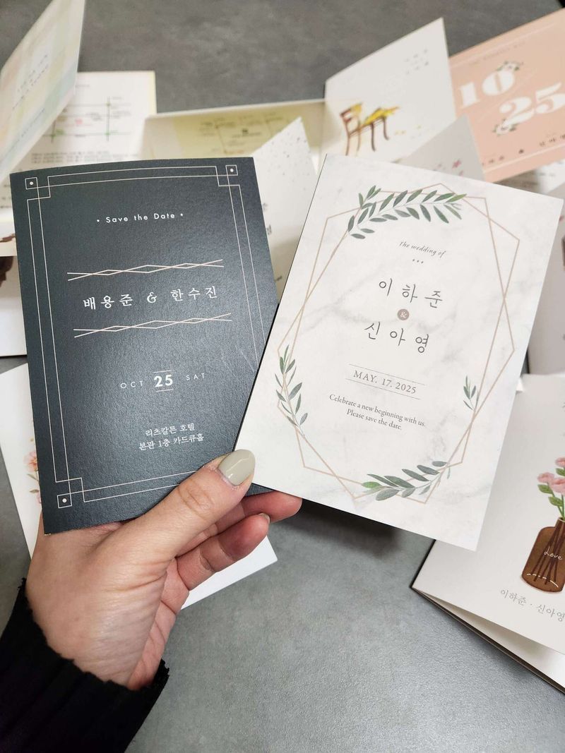 6월 본식으로 인해 청첩장을 알아보는 도중에 우연히 가성비 좋은 카드큐 청첩장을 알게되어 샘플을 주문해봤어요! 근데 왠걸... 가격도 너무 좋은데다 제 취향저격이었습니다.. 무엇보다 청첩장은 크기가 중요하다고 생각했습니다. 특히 남자친구들은 청첩장 받으면 주머니에 구겨서 넣는 친구들을 많이 봐왔고 여자친구들은 요즘들어 작은사이즈의 가방을 가지고 다니기에 청첩장이 크면 자리를 많이 차지하게 되더라구요. 그런데 카드큐 청첩장은 적당한 사이즈의 퀄리티도 너무 좋아서 바로 여기다!! 했습니다. 맘에 드네요 ㅎㅎ 제휴가 된 업체면 더 할인받을 수 있었을 것 같은데 아쉽습니다 ㅎㅎ 디자인 : 추천♥ 우연히 알게된 청첩장 업체였는데 생각보다 디자인도 예쁘고 알찬 구성으로 좋았습니다 가격 : 추천♥ 웨딩북이랑 제휴가 되어있는 업체는 아닌것 같지만 가격은 상대적으로 좋았고 종이도 얇지않고 좋았습니다. 서비스 : 추천♥ 샘플후기를 남기면 이벤트를 진행하고 있는데 공유하는 과정에서 자꾸 에러가 나서 시간이 좀 지연됬지만 응답도 빠르고 친절했습니다