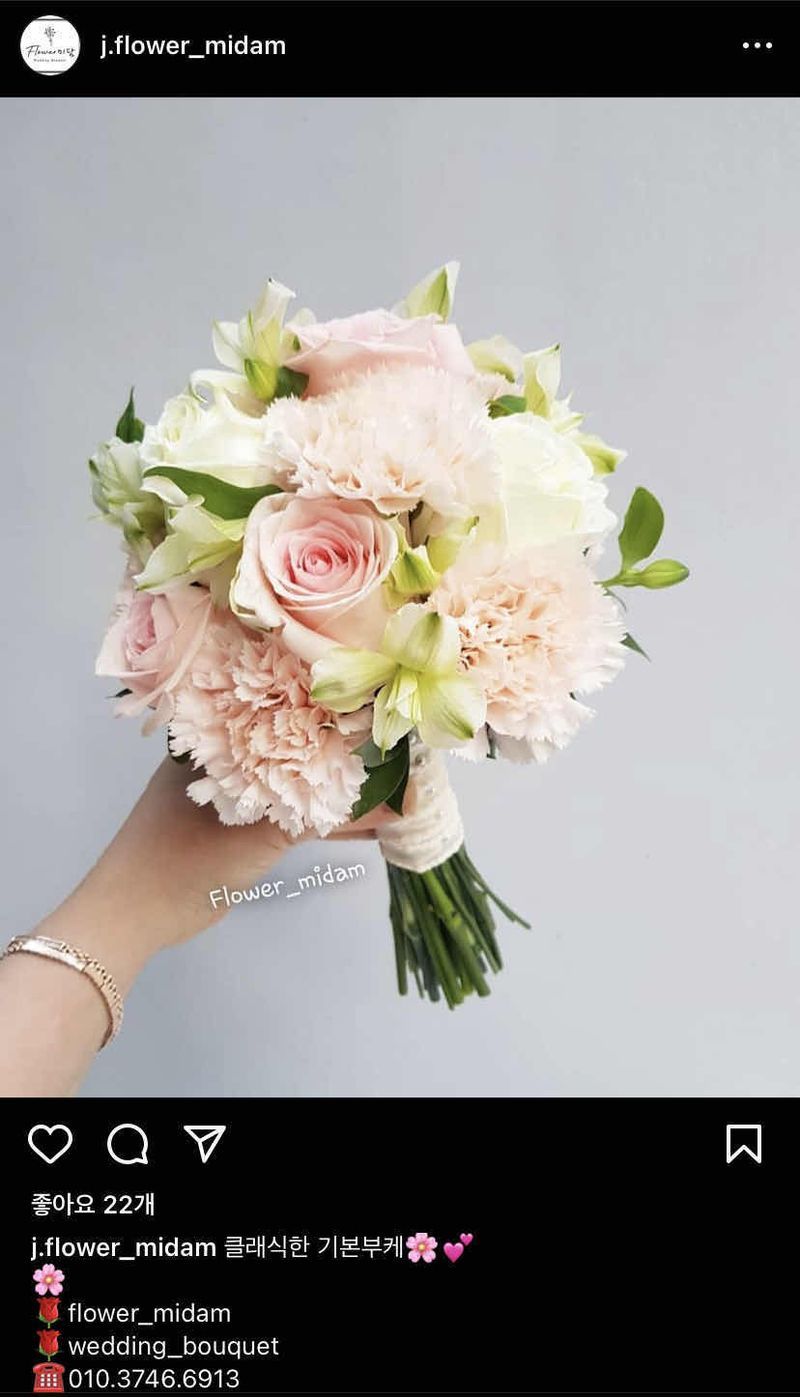 작년 8월에 웨딩북 스드메 비대면 상담을 통해 받은 쿠폰으로 부케를 주문하게 되었어요~ 결혼준비 하면서 10~20만원 훌쩍 소비되는게 참 쉬운에 부케라도 10만원 쿠폰 받아서 0원에 진행할 수 있다니 감사하네요😭 웨딩북에서 포인트 10만원 모으는 것도 정말 힘드니까요. 부케는 본식 당일에만 사용하고 생화는 따로 드라이플라워 하지 않는 이상 오래 보관하기 힘드니까 그냥 기본 부케중에 더 추가 안하고 골랐어요~ 업체 인스타도 많이 참고했는데 기본부케도 충분히 예쁘게 잘 나오더라고요. 무엇보다 부케에다가 신랑 부토니에와 혼주 코사지 6개가 함께 포함된 가격이라 너무 만족스러워요! 다른 분들 후기도 좋아서 기대중입니다! 물론 배송비도 추가없이 본식 당일에 메이크업샵으로 보내주시는 것도 진짜👍👍👍👍 인스타도 자주 업데이트 해주셔서 더 믿음이 가고, 고객응대도 친절하게 해주셔서 더 만족스럽네요~ 본식날 부케 기대됩니다❤️ 부케 : 추천♥ 핑크리시안셔스로 부탁드렸어요. 제가 워낙 핑크계열을 좋아하기도하고 색감이 너무 튀지 않으면서 드레스나 웨딩홀 분위기가 잘 어울릴 것 같아서 골랐습니다🌸 가격 : 추천♥ 본식에 싱싱하고 예쁜 부케가 올 것을 기대중입니다! 서비스 : 추천♥ 부케쿠폰으로 주문 가능한 업체라서 혹시라도 불친절할까 걱정했었는데 다른 분들 후기처럼 응대도 잘해주시고 친절해요👍
