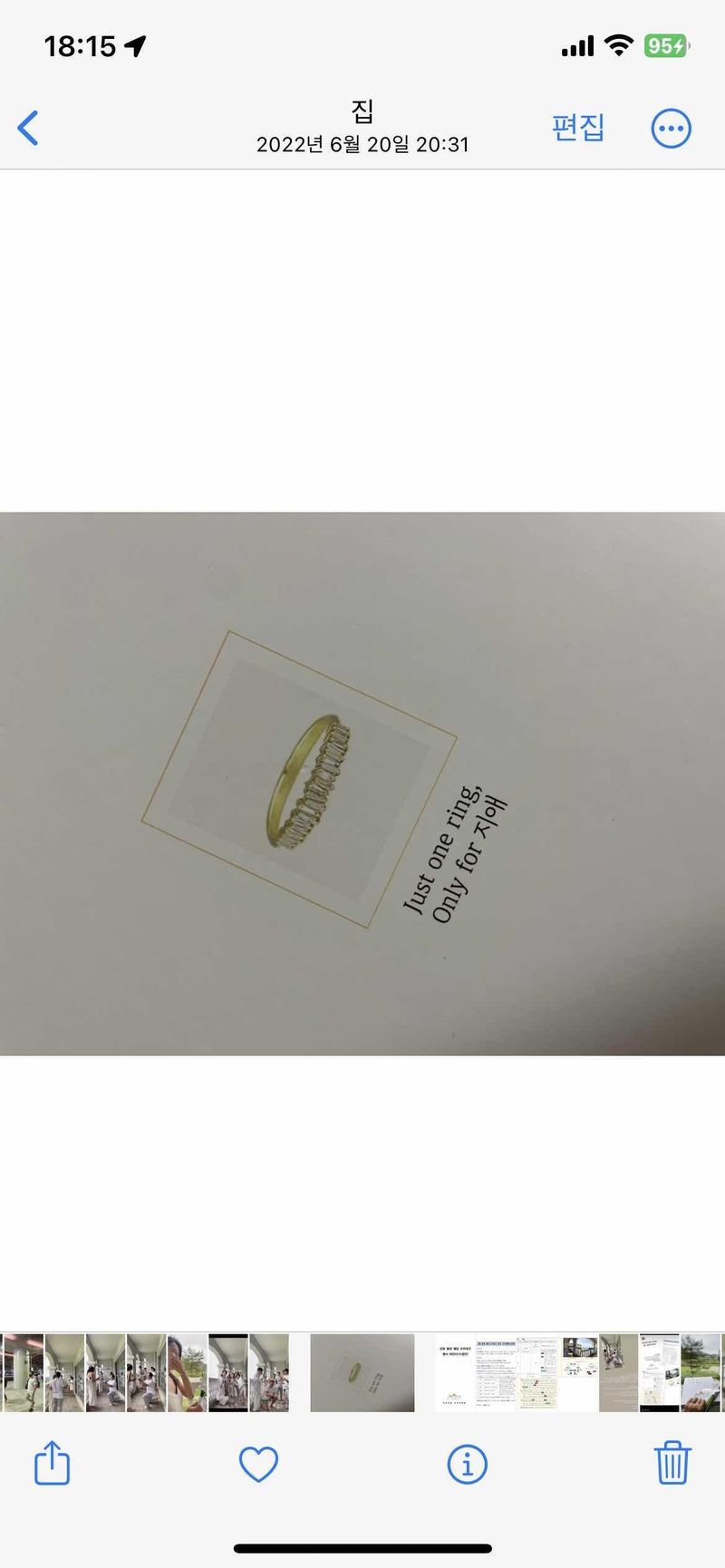 우선 포카라 대표님께 너무너무 감사드립니다. 이렇게나 우아하고 클래식하고 오랫동안 함께할 수 있는 반지를 선물해주시다니 ㅠㅠ 포카라가 아니였으면 이런 감동을 받을 수 있었을까 싶어요. 몇년전에 인스타로 포카라를 알게되어 귀걸이를 구매하면서, 결혼하게 되면 포카라에서 웨딩링을 하고 싶다는 그냥 막연한 생각만 있었습니다. 그런데 또 시간이 흘러흘러 이 시간이 찾아오더라구요. 그때 제 머리에 떠오른 포카라 ㅎㅎㅎㅎ 남들은 다 한다는 반지원정대는 집어치우고 그냥 무작정 포카라를 예약해서 울산에서부터 찾아갔습니다. 사진으로만보던 포카라, 실물은 더 더 더 이쁘고 말도 안되는 고급스러움이였어요. 그리고 프로포즈링으로 just one ring 다이아도 깜짝 선물 받았네요. 프로포즈를 받을때 포카라 박스를 보고 눈물이 빵.. 터졌던 기억이 나네요.. 흐흐 저희 커플에게 이렇게 좋은 시간을 그리고 좋은 반지를 선물해주셔서 감사합니다! 디자인 : 추천♥ 몇년 전부터 인스타에서 우연히 보게 되어, 첫 눈에 반한 코스모 디자인입니다. 언젠가 나도 결혼하게 되면 이렇게 우아하고 클래식한 웨딩반지로 꼭 해야지라고 마음을 먹었는데, 시간이 흘러 어느새 또 그날이 오더라구요. 예랑이를 꼬셔서 샵을 방문했던 기억이 있네요. 품질 : 추천♥ 직접 방문했을 때 대표님의 온기와 피팅이 무척 좋았습니다. 하나하나 직접 껴보니 또 손과 어울리는 느낌과 핏 감을 체험할 수 있었어요! 다른 샵과 다르게 안쪽까지 섬세한 세공이 들어가있는 걸 보고 이건 진짜 명품이다 싶었어요 ㅎㅎㅎㅎㅎ 예랑이도 그걸 보더니 다른샵은 이제 가지 않아도 되겠다고… 바로 선택했던 것 같아요!! 서비스 : 추천♥ 대표님께서 정말 친절하세요. 우선 결혼을 하게 되면 여기저기서 많은 축하를 받는 것 같습니다. 그 축하가 낯설기도 하고 겸연쩍기도 하고 그런데요… 포카라에 방문했을 때도 진심으로 저희 결혼을 축하해주시고 또 그에 맞는 링을 추천해주셨던 시간들이 참 기억에 많이 남습니다.