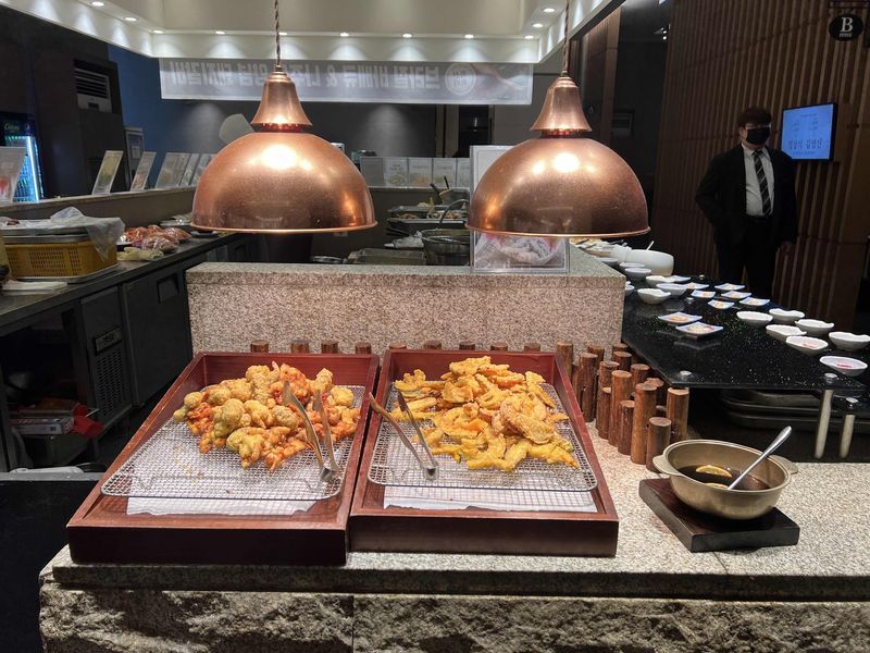 본식을 3주 앞두고 시식 다녀온 후기입니당! 여러 의견 취합을 위해 최대 인원과 함께 왔으면 좋았을텐데 아쉽게도 저와 예랑이만 다녀왔어요 ㅠㅠ 생각했던것보다 가짓수도 많고 첫타임에 가니 음식도 다 채워져있고 퀄리티가 좋더라구요 스시 종류도 다양하고 샐러드부터 잔치국수, 비빔밥, 짬뽕, 왠만한 음식들은 다 있었어요! 김치전이 맛있어서 자꾸 가져다 먹게되는.... 예랑이는 육회와 충무김밥, 갈비탕이 제일 맛있다고 함ㅎ 주류도 무제한이고 디저트도 떡부터 쿠키, 케이크까지 종류가 다양해서 좋았어요 다만 커피가 연회장 밖에 있고 반입 금지라 아쉬웠지만 ㅠㅠ 제 식이 중간타임이라 본식때 음식만 잘 채워진다면 만족스러울 것 같아요 홀분위기 : 추천♥ 우선 모든층이 층고가 높아서 시원시원해요 음식 : 추천♥ 얼핏 봤을때는 먹을게 없어보였는데 시식하고나니 가짓수도 많고 괜찮았어요 서비스 : 보통♥ 당일혜택이 많다고 들었는데 정말 그렇더라구요