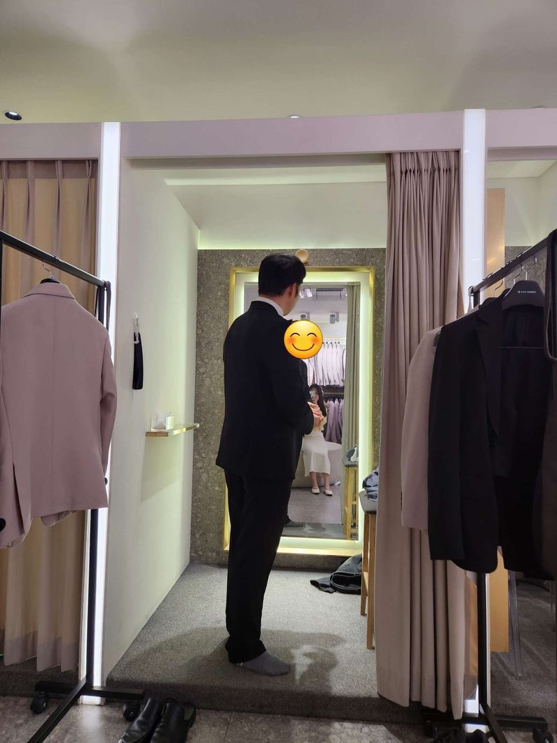 저희는 신랑이 정장을 잘 입지 않는다 하여 본식 예복+촬영용 정장 2벌 전체 대여로 진행을 했습니다. 진열된 대여복 퀄리티는 무난했으나 실제 대여되는 정장은 따로 있다고 해서 안심이었습니다. 컬러는 블랙, 차콜, 네이비, 베이지, 핑크, 블루 등으로 다양했고 촬영 시 넥타이 꾸러미가 제공돼 정장에 다양하게 매치가 가능할 것 같습니다. 이미 정장을 갖고있거나 평소 잘 입지 않아 맞춤 정장이 굳이 필요하지 않는 예비부부에게 추천드립니다🤗 상품 : 추천♥ 본식 예복 1벌(프리미엄)+촬영용 2벌(기본)으로 계약했는데, 계약 시 촬영용 넥타이 꾸러미와 본식용 구두를 무료로 대여할 수 있었습니다. 정장 기본 구성은 자켓과 바지이며, 베스트나 셔츠 등은 추가금을 지불 뒤 대여 가능했습니다. 가격 : 추천♥ 진열되어있는 정장 퀄리티는 무난한 편이었는데 실제 대여해주시는 정장은 따로 있다고 해서 더욱 안심이었어요 서비스 : 추천♥ 상담때 스튜디오 어딘지 말씀드렸더니 담당 매니저님께서 해당 스튜디오의 촬영 배경과 어울릴만한 색상을 추천해주셔서 좋았고, 베스트를 추가할까 고민했었는데 정장 색상에 따라 베스트 추가 유무를 추천해주셔서 순조롭게 정장을 고를 수 있었습니다