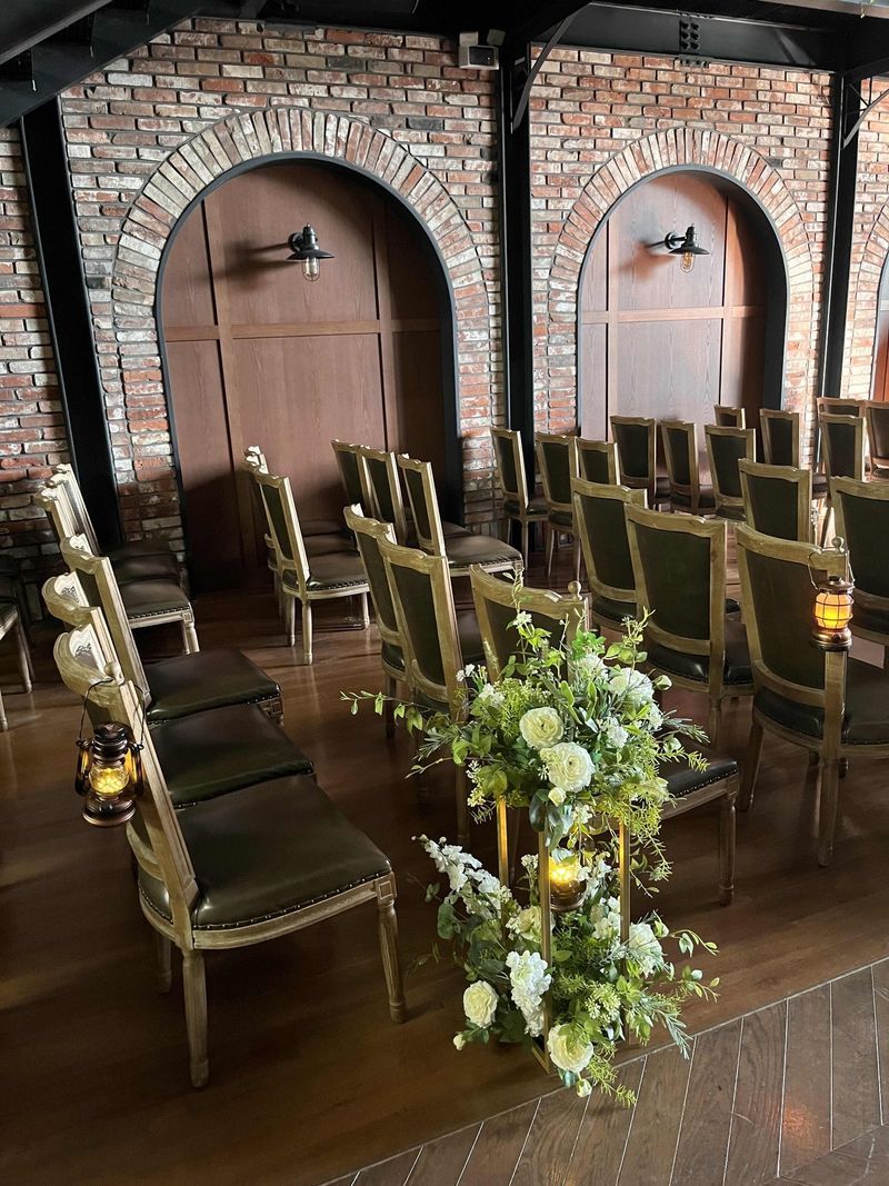 저희가 픽한 웨딩홀입니다 🥰 가격도 합리적이고 날씨에 영향받지 않는. 하우스 웨딩홀이라는 점, 창문이 많아 환하고 자연광을 받을 수 있다는 점, 다른 웨딩홀에 비해 밝은 분위기인점, 복층이라 층고가 높고 2층에서 입장 가능한점, 단독홀이고 뷔페도 알찬 메뉴구성에 오픈키친이라 안심도 되고 주류 서비스는 정말 최고👍🏻 초역세권이기도 하고 오히려 강남, 용산보다 자차로 오기 좀더 편할 것 같고 등등등 장점만 가득했습니다! 원래 웨딩홀 후보에 없었는데 안갔으면 큰일날뻔했어요!!! 꼭 한번 방문해보세요 ㅎㅎㅎ 박실장님 만나면 더 좋구요!!! 박실장님 몸에 밴 서비스 정신이 너무 감동스러웠습니다!!! 이렇게 예쁜 곳에서 좋은 분을 통해 진행하게 되어 웨딩준비 시작부터 기분이 매우 좋습니다 ㅋㅋ😃 모두 즐거운 웨딩준비하시와요 💕 홀분위기 : 추천♥ 우드+그리너리한 밝은 하우스 웨딩홀이에요!!! 복합상가 건물이라 1층에서 오잉 할 수 있지만 웨딩홀 로비부터 매력에 못헤어나오실거라 장담합니다!!!! 2층 복층 형태 단독홀이라 2층에서 계단으로 입장 가능 한다는 점 👍🏻 메인홀 단상 통창과 천장의 창문들이 답답한 느낌을 없애고 청량하고 자연광을 흠뻑 느낄 수 있어 좋았어요 ❤️ 음식 : 추천♥ 양갈비도 있고 기본 뷔페구성이 다 탄탄하더라구요!!! 주류가 서비스인게 많이 장점 🫶🏻 서비스 : 추천♥ 박실장님한테 상담받게 되신다면, 예약안할 수가 없을거에요!!! 이때까지 갔던 웨딩홀 중에 서비스 완전 백점만점입니다!! 당일 계약 강요도 없으시고 편안하게 둘러볼 수 있게끔 충분한 설명과 예식이 마무리 될때쯤 방해안되게 그리고 저희가 충분히 사진찍을 수 있게 해주시도 예식장 분위기 바뀌는 부분도 리허설 해주세요!!!