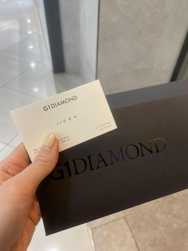 예비신랑과 미루고 미루던 웨딩밴드 바로 계약하고 온 후기 입니다 ! 워낙 보석에 관심 없던 저의 성향상 딱 두 곳만 예약 신청을 해놓고 (다이아몬드, 일리아스) 가장 먼저 G1 다이아몬드로 향했습니다 종로 효성쥬얼리시티 안에 있어서 주차도 편하고 이동이 너무 편했습니다 ㅎㅎ 대기하는 장소도 넓고 편했고 간단히 방문목적만 작성 후 바로 상담을 받았습니다 저희가 차가 막혀서 미리 전화드렸는데 친절히 응대 해주셔서 너무 감사했어요 ㅠㅠ 거의 50개가 넘는 디자인을 보고 껴봤습니다 ㅋㅋ 응대 해주시는 여자 이사님이 정말 너무 편한 분위기에서 마구마구 껴볼 수 있게 해주셨어요 ㅋㅋ 또 저희 반응을 보고 선호하는 반지 스타일을 바로 알아채시고는 좋아할만한 디자인으로 더 꺼내주셨어요 반지가 자꾸 나와… ㅋㅋㅋ 마치 이상형 월드컵 하는 느낌? 처럼 편하게 고르게 해주셨습니다! 심플 + 깔끔 스타일을 선호하는 저희였고 보석에 관심이 없는줄만 알았던 저의 취향은 반짝이는걸 아주 좋아하는 여성 이였습니다…. ㅋㅋㅋㅋ 디자인도 많고, 응대 분위기나 매장 분위기도 고급스럽고 편해서 바로 계약하고 싶었지만 ㅠㅠ 한곳만 보고 계약하기엔 좀 아쉬워서 다시 온다고 말씀드리고 일리아스로 향했습니다. 그리고는 한시간 후에 다시 G1 다이아몬드로 가서 계약했습니다 ㅎㅎㅎㅎ 디자인이 너무 마음에 쏙! 들었고 응대해주셨던 이사님도 너무 좋으셨고 특히 가격적인 메리트나 사은품까지 안 할 이유가 없었어요 … ㅋㅋㅋ 혼주 브로치까지 2세트나 받았어요 + 가드링.. 까지 ^^ 히히 다음달에 반지 찾으러가는데 너무 기대됩니다! 다들 마음에 드는 웨딩밴드 맞추시고 기분좋게 웨딩링 졸업하시길 바래요:) 친절히 응대해주셨던 김영미이사님 감사합니다 ^^ 디자인 : 추천♥ 일단 샵 분위기가 너무 좋았고 디자인 또한 너무 많았어요 ㅋㅋㅋ 계속 꺼내주셔서 껴보다보니 내가 원하는 디자인을 찾는 느낌이랄까..! 품질 : 추천♥ 저희는 우신다이아로 선택했어요:) 보증서를 보니 더욱 믿음이 가고 잘했다라는 생각이 들었습니다 ㅋㅋ 서비스 : 추천♥ 대기하는 장소도 넓고 편했고 간단히 방문목적만 작성 후 바로 상담을 받았습니다 저희가 차가 막혀서 미리 전화드렸는데 친절히 응대 해주셔서 너무 감사했어요 ㅠㅠ 거의 50개가 넘는 디자인을 보고 껴봤습니다 ㅋㅋ 응대 해주시는 여자 이사님이 정말 너무 편한 분위기에서 마구마구 껴볼 수 있게 해주셨어요 ㅋㅋ 또 저희 반응을 보고 선호하는 반지 스타일을 바로 알아채시고는 좋아할만한 디자인으로 더 꺼내주셨어요 반지가 자꾸 나와… ㅋㅋㅋ 마치 이상형 월드컵 하는 느낌? 처럼 편하게 고르게 해주셨습니다! 심플 + 깔끔 스타일을 선호하는 저희였고 보석에 관심이 없는줄만 알았던 저의 취향은 반짝이는걸 아주 좋아하는 여성 이였습니다…. ㅋㅋㅋㅋ