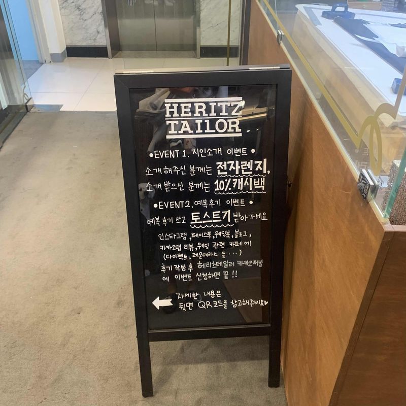 저희는 3//26 박람회에서 스드메와 헤리츠테일러에서 가계약을 하고.! 4/15 헤리츠테일러에 가서 최종 계약하고 왔습니다! 3년전에 형부가 헤리츠테일러에서 예복을 맞추고 너무 좋다고 극찬을 하던 터라, 별다른 고민 없이 결정을 했구 결론적으로는 너무 만족스럽습니다! 위치는 압구정 로데오쪽에 있고, 근처 가로수길 구경하다가 헤리츠테일러에 방문했어요! 1층에 5분정도 대기 후에 3층에서 상담 도와주셨어요! 권윤미 플래너님께서 윤경필 본부장님으로 상담 지정해주셔서, 보다 전문적으로, 상세하게 예복 관련하여 상담을 도와주셨어요! 샘플을 입어보면서 이태리 원단과 영국 원단에 대해 자세히 설명해주셨고, 1시간 넘게 걸린 상담시간이 지루하지 않게 재미있게 진행해주셨어요! 한번뿐인 결혼식에 좋은 예복으로 맞춰주고 싶었고, 예복 샘플을 보면서 좋은 원단을 고르다보니, 비용이 저렴하진 않았지만, 후회가 없는 결정이었어요! 5월초에 가봉 예약 잡았고 예쁜 예복이 나왔으면 좋겠어요! 상담해주신 윤경필 본부장님 감사합니다! 상담 하는 동안 재밋고 즐거웠습니다!! 상품 : 추천♥ 맞춤예복과 구두이용하였고 맞춤예복에 바지 추가하였습니다. 가격 : 추천♥ 가격은 사실 비싼 편이지만 그만큼 좋은 품질로 대신할 것이라 생각합니다. 서비스 : 추천♥ 서비스 좋았습니다. 윤경필 본부장님 감사합니다