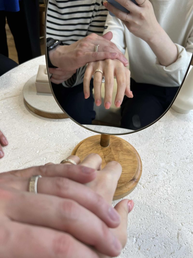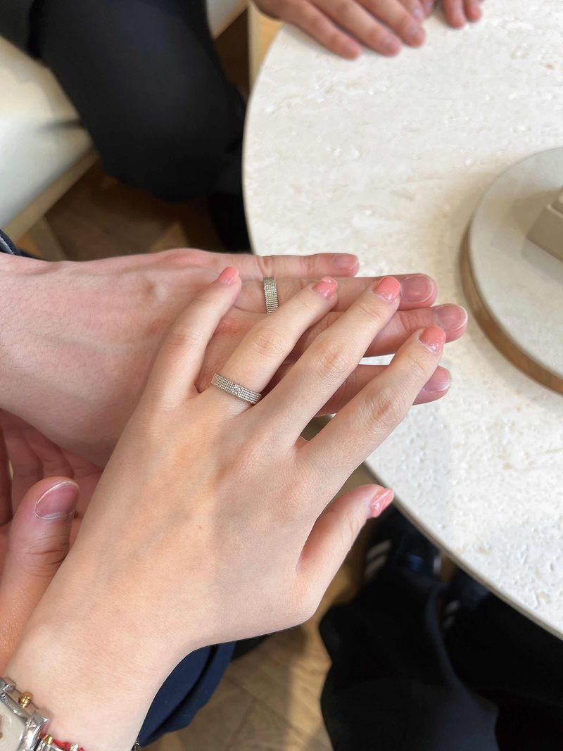 <포카라 다이아몬드 웨딩밴드 수령후기> 저는 웨딩밴드를 할때 나름의 기준이있었어요. 1.흔하지않을것 2.질리지않을것 3.심플할것 그렇게 명품브랜드도 둘러보고 고민하던 중 sns광고를 통해서 우연하게 포카라 다이아몬드라는 디자이너샵에대해 알게되었습니다. 무엇보다도 반지 디자인 하나만 보고 꽂혔어요 하루날을잡고 웨딩밴드 투어를 해야하나 고민하던 찰나 우선 방문예약을 진행했고, 방문을 했는데요 생각보다 예약 시간간격을 넓게 두는 편인거같아서 이렇게 오래걸리나했는데 실제로 상담이 굉장히 친절하고 상세하게 진행되서 1시간이 훌쩍 지난것도 몰랐어요 서비스나 상담에 걱정이신분들은 정말로 걱정 하나도 안하셔도 될거같습니다-!!! 우선은 포카라에있는 대표 디자인들을 한번 보여주시고 제일 맘에 드는 디자인으로 선택하면, 커스텀을 할수있는데요 저는 18k, 내츄럴골드로 진행한거같아요 이게 미묘하게 색도 다르고 자연광에서보는것과 실내 조명아래에서 보는게 차이가있다며 직접 샵 문을열고 실외에서 비교하게끔 도와주시는걸 보면서 좀 더 확신이 들었어요,, 또 겉표면만 만드는게아닌 안까지 동일하게 세공한 측면을 보고 그냥 바로 진행하게 되었습니다. 예정일은 5월 26일이였는데 생각보다 빨리 만들어져서 너무 기분좋게 픽업할수있었어요 다이아몬드도 기존에 계약한 등급보다 운좋게도 한등급 위로 준비가가능해서 진행해주셨다는 말에 더 기분이 좋았네요^^ 남자친구도 기존 5줄이아닌 6줄로 진행했는데 크고 투박한 손이라 볼수록 선택을 잘했다 싶습니다. 남들이 알아서 똑같은 반지를 끼고싶지는 않지만, 웨딩밴드때문에 고민이시라면 한번 상담해보시는것도 좋을거같아서 후기남깁니다^^ #웨딩밴드#포카라다이아몬드#웨딩링#커플링#심플웨딩링