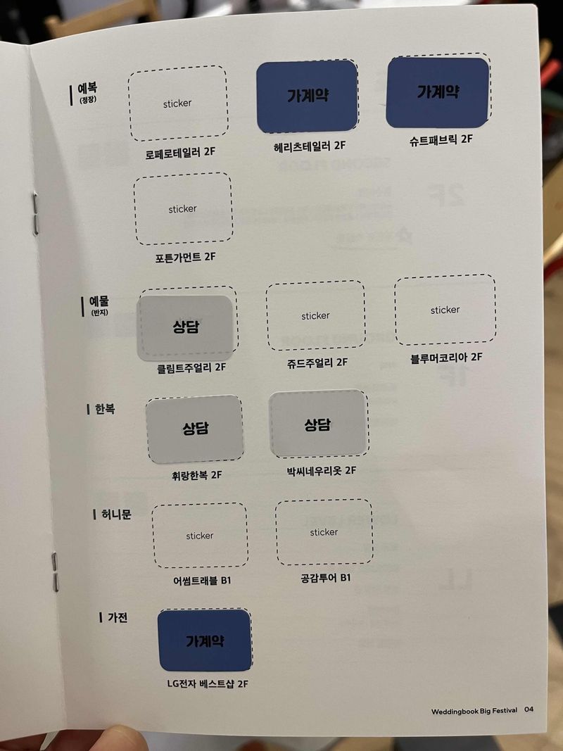 페스티벌 방문 후기를 드리자면 좋은업체가 있는 반면 별로인 업체도 있고 혜택이 엄청 많다고는 못느꼈어요 ㅎㄹㅊ 같은 경우는 박람회 가서 받은가격과 ㅎㄹㅊ 페이지에 프로모션가가 동일한테 굳이 갔어야 했나 생각도 들고? 커플링은 많이 껴봐서 어떤게 어울리는지는 알것같아요 가면 거의 가계약이라도 걸려고 다들 눈에 불켜고 계시니깐 현명한 선택하세용 업체 : 기존에 웨딩북 방문에서 스드메 이미 김진아 플래너님이랑 계약 하고 혼수랑 예물예복 때뮨에 페스티벌 때문에 또 방문했어요 다 좋았는데 흠…강제로 정계약 맺을려고 하는업체가 있고 계약 안하면 상담 스티커 안붙여주려 하는업체도 있어서 좀 ㅋㅋㅋ어이없었어요 가격 : 추천♥ 가격은뭐 믿고 맏겨도 플래너님들이 잘해주세용 서비스 : 추천♥ 직원들 친절하세요 문제있으시면 바러 해결해주시고