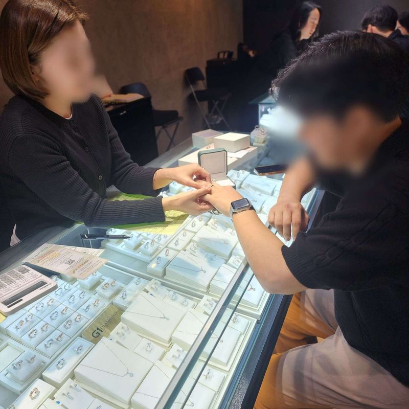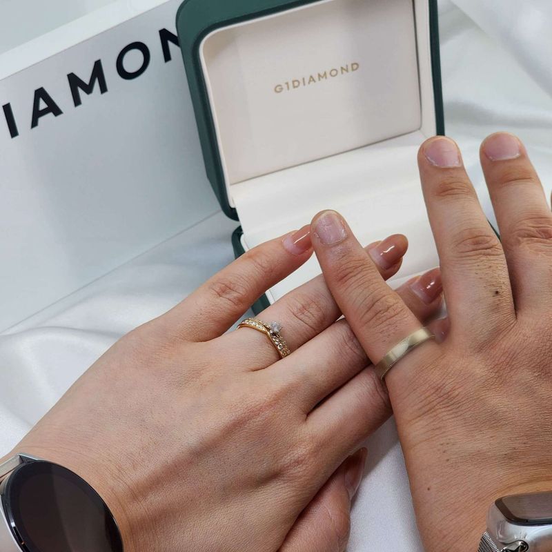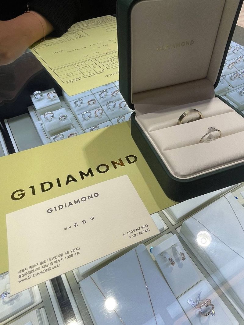 웨딩링을 선택하는 과정에서 가장 중요하게 고려한 부분은 디자인이었는데요~ 물론 합리적인 가격도 중요하지만 매일 끼고 다닐 반지니까 너무 흔한 디자인은 하고싶지 않았어요 저희는 효성 주얼리 시티에 있는 나비드 주얼리와 G1 다이아몬드 그리고 동연 이라는 업체까지 세군데를 둘러보고 G1 다이아몬드로 최종 결정을 하게되었어요 . 확실히 반지 할때 세군데는 가보라는 말이 그냥 있는게 아닌게 매장마다 반지 디자인도 많이 다르고 분위기도 많이 다르더라구요 저는 프로포즈를 먼저 받아서 티파니 웨딩밴드가 있었기 때문에 데일리로 같이 끼고 다니려고 1부 메인다이아가 있는 최대한 얇은 링의 반지만 찾고있었어요 사실 1부 다이아에 얇은 링 디자인으로 보여달라고 하니 디자인에 제약이 있어서 다 비슷해보였어요 기본 스타일도 여러개 껴봤고, 특이하게 하트모양 메인다이아가 있는 반지도 껴 봤는데 긴가민가 하더라구요 ^^ 마지막으로 방문한 G1 다이아에서 1부 다이아 옆에 참깨가 둘러져있고 밴드에도 참깨다이아가 박힌 반지를 보여주셔서 한번 껴봤는데 원래 끼고 있던 반지와 너무 잘어울리더라구요!! 제 남자친구는 너무 심플한 반지보다는 어느정도 디자인이 들어간걸 선호하고 너무 두께가 두껍거나 투박한건 싫다고 해서 남자친구도 정~말 많은 반지들을 껴봤답니다 결국 고민 끝에 g1 다이아몬드에서 계약하게 되었어요 디자인, 품질, 가격, 고객 서비스 등 모든 요소에서 만족스러운 선택이었어요 ^^ 디자인 : 추천♥ 저는 프로포즈를 먼저 받아서 티파니 웨딩밴드가 있었기 때문에 데일리로 같이 끼고 다니려고 1부 메인다이아가 있는 최대한 얇은 링의 반지만 찾고있었어요 사실 1부 다이아에 얇은 링 디자인으로 보여달라고 하니 디자인에 제약이 있어서 다 비슷해보였어요 기본 스타일도 여러개 껴봤고, 특이하게 하트모양 메인다이아가 있는 반지도 껴 봤는데 긴가민가 하더라구요 ^^ 마지막으로 방문한 G1 다이아에서 1부 다이아 옆에 참깨가 둘러져있고 밴드에도 참깨다이아가 박힌 반지를 보여주셔서 한번 껴봤는데 원래 끼고 있던 반지와 너무 잘어울리더라구요!! 제 남자친구는 너무 심플한 반지보다는 어느정도 디자인이 들어간걸 선호하고 너무 두께가 두껍거나 투박한건 싫다고 해서 남자친구도 정~말 많은 반지들을 껴봤답니다 저희가 선택한 디자인은 심플하면서도 세련된 느낌을 주어서 보자마자 너무 마음에 들었어요 품질 : 추천♥ 제 반지는 우신으로 했고 계약할때 0.1캐럿에서 0.16캐럿으로 업그레이드 해주셨어요 ♡ 색은 둘다 고급스러운 샴페인 골드로 골랐어요 . 원래 반지가 로즈골드인데 요새는 아예 로골이랑 샴골이 같이 붙어서 디자인 된 반지도 많더라구요 ~ 레이어드 해서 끼니까 너무너무 예뻤어요 >< 남자친구 반지에도 아주 작은 참깨 다이아가 하나 들어가는데 큐빅으로 할까 하다가 변하지 않는 사랑을 뜻하는 다이아가 아무래도 있었으면 좋겠어서 랩다이아로 했답니다 ㅎㅎ ( 이사님 재량으로 큐빅에서 서비스로 바꿔주셨어요 ~!! ) 서비스 : 추천♥ 반지를 선택하는 과정에서 직원들의 친절한 안내가 인상깊었어요^^ 먼저 제 반지부터 고르고 나서 남자친구 반지를 골랐는데 굉장히 많은 반지를 꼈다 뺐다 하고 조금이라도 마음에 안드는 기색이 있으면 뒤로 빼주시고 새로운 반지를 계속 가지고 와주셨어요 ^^ 계약 후 서비스 혼주 브로치 6종과 귀걸이 4종중 양가 각각 한세트씩 고를 수 있었는데 사진으로 찍어가고 어머님들이 고른 후에 반지 수령할때 같이 수령하는 방식이더라구요 ^^ 브로치도 귀걸이도 너무 고급스럽고 예뻤어요