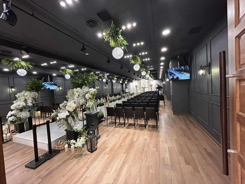 강남권에서 가성비 좋게 진행하고싶은 분들께 추천합니다. 양재역에서 가까워서 위치도 좋고, 주차 250대 가능인데 주말에는 웨딩홀에서 거의 단독으로 사용해서 널럴한점이 맘에 들었습니다. 가성비인 느낌이 좀 나는 편이라 저는 계약은 진행하지 않았습니다. 홀분위기 : 보통♥ 심플하고 깔끔한 느낌의 웨딩홀이였습니다. 꽃장식이랑 샹들리에가 추가될 예정이라고 하니 인테리어가 더 좋아질 것 같고, 화장실도 리모델링 예정이라고 해요. 하객석 의자가 약간 부실(?)해보이는 점은 아쉬웠어요. 음식 : 보통♥ 웨딩홀과 한층에 있어서 동선이 편합니다. 메뉴는 120여가지라 다양하고 무제한 음주류도 포함이라 좋았습니다. 브라이드밥리(?)라는 별명이 있어 기대했는데 보기에 특별해보이진 않았습니다. 직접 먹어보진 않아서 맛은 모르겠어요. 서비스 : 추천♥ 강남권인데 반해 좋은 가성비와 혜택이 있는 곳인 것 같아요. 담당자분이 친절하게 상담해주셨고, 잔여타임 예약시 혼주 메이크업을 서비스 혜택도 주셨습니다.
