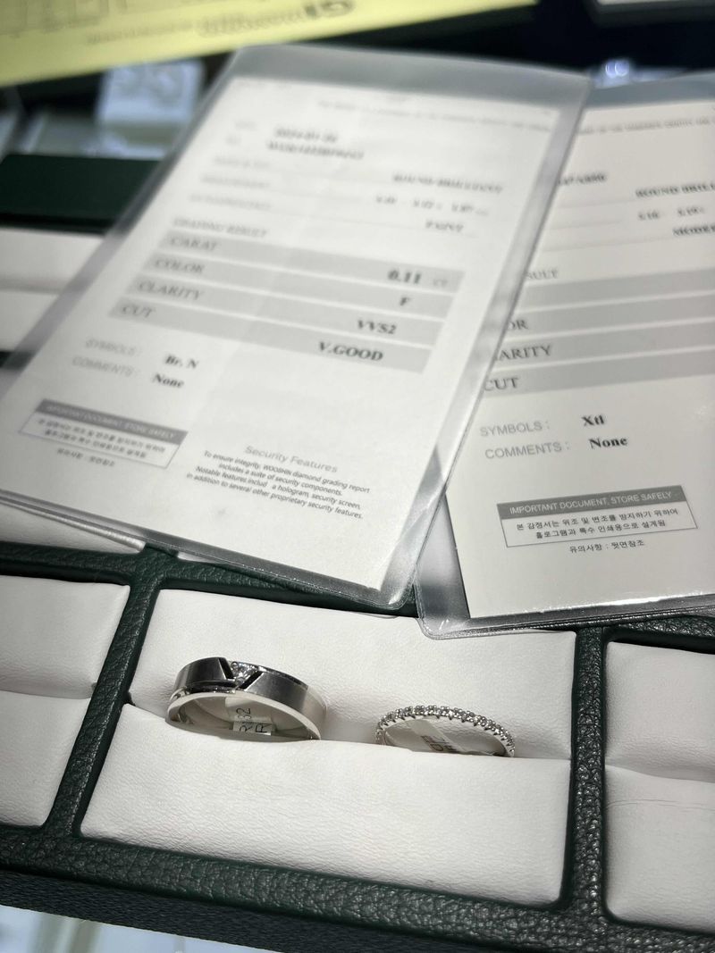 가성비 좋게 웨딩 반지 맞추고 싶어서 종로에 방문했어요. 사실 저희는 아무 생각 없이 예약을 하지 않고 효성쥬얼리시티에 방문했다가..🥹 당일 상담이 어렵다는 이야기를 몇 번 듣고 방황했어요. 그러다가 G1에 기웃기웃거렸는데, 다행히 상담이 가능하다고 하셔서 휴우.. 운이 좋았습니다..! 여기 저기 돌아다니면서 가격과 디자인 따져봐야지 했던 저희는, 이 반지 디자인에 완전 꽂혀서 바로 계약까지 하고 왔어요. 친절한 상담과 서비스까지 아주 만족하고 돌아왔습니다. 감사합니다❤️ 디자인 : 추천♥ 고급스럽고 넓은 매장에 정말 다양한 웨딩반지 디자인이 가득했어요! 특히 저희는 계약한 반지 디자인에 첫 눈에 반해버렸답니다..❤️ G1다이아몬드에서만 반지 구경해도 될 정도에요. 품질 : 추천♥ 무광/유광 그리고 컷팅, 큐빅 등의 세세한 디자인도 좋았고요. 다이아몬드 종류와 등급, 중량도 검증되어 안심하고 계약했습니다. 서비스 : 추천♥ 가성비 좋게 웨딩 반지 맞추고 싶어서 종로에 방문했어요. 사실 저희는 아무 생각 없이 예약을 하지 않고 효성쥬얼리시티에 방문했다가..🥹 당일 상담이 어렵다는 이야기를 몇 번 듣고 방황했어요. 그러다가 G1에 기웃기웃거렸는데, 다행히 상담이 가능하다고 하셔서 휴우.. 운이 좋았습니다..! 여기 저기 돌아다니면서 가격과 디자인 따져봐야지 했던 저희는, 이 반지 디자인에 완전 꽂혀서 바로 계약까지 하고 왔어요. 친절한 상담과 서비스까지 아주 만족하고 돌아왔습니다. 감사합니다❤️