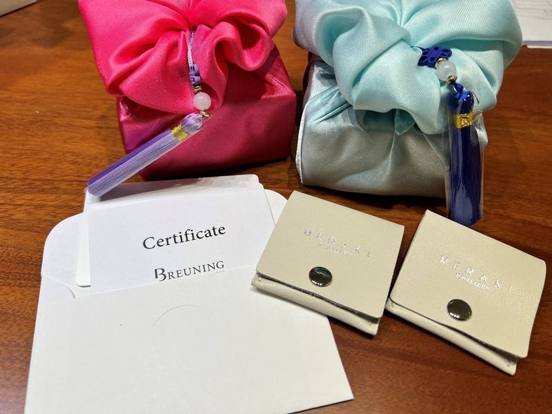 2달 넘어 기다린 반지가 드디어 한국 도착해서 주말에 바로 수령했어요 너무 너무 예뻐요 웨딩밴드로 매일 착용할 반지지만 다이아몬드가 큼지막하게 중아에 있어 가드링이랑 착용하면 또 느낌이 다르고 너무 맘에 들어요 역시 결혼반지는 천연 다이아몬드로 해야 변하지도 않고 좋은 거 같아요 ㅎㅎ 백화점 브랜드인 티파니 같은 다이아인데 반짝 반짝이고 좋아요 디자인 : 추천♥ 데일리로 착용할 반지인데도 다이아몬드가 있는 클래식한 디자인이라 유행도 없고 누가봐도 결혼반지네 하는 디자인으로 했어요 브로우닝의 특허 세공이라 우리나라에서는 할 수 없다고 하셨는데 정말 반지 많이 보러다닌 저희가 봐도 이런 세공은 없었어요 그만큼 디자인이 독특하고 남편 반지의 심플과 세련미가 직접보면 달라요 품질 : 추천♥ 백화점 명품 브랜드처럼 같은 다이아몬드 퀄리티 확인도 해주시고 품질은 더 말할 필요 없는 반지예요 화이트 골드가 눈처럼 하얗고 광이 버껴져도 절대로 노란 금색이 올라오지 않는 품질력이 있는 반지라 결혼반지로는 완벽이겠죠 서비스 : 추천♥ 계약 후에도 여러 번 중간 연락을 주셔서 기다리는 동안도 감사했어요 세관 통관했다고 연락 주시면서 사진도 보내 주셔서 더 기대되고 막 설레기까지 했어요 혼주 예단 포장도 정성스럽게 해주시고 보증서, 휴대용파우치, 더블 패캐지까지 반지만 고급스러운게 아니라 팩킹까지 다 고급스러워서 감사해요