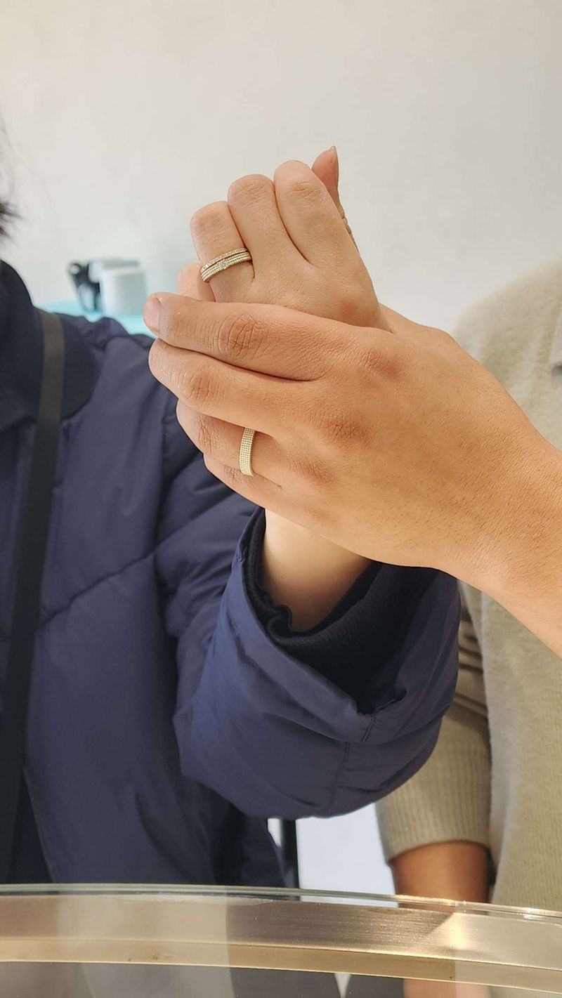 꼭 포카라다이아몬드 쇼룸 방문하셔서 다양한 반지도 껴보시는걸 추천해요 실물이 정말 이뻐요 디자인 : 추천♥ 포카라다이아몬드 웨딩밴드 '코스모' 후기 안녕하세요 예비신부입니다 원래는 반지를 안 하려고 했는데 예랑이는 반지는 있어야 되지 않겠냐며 설득당해서 구매하게 되었어요 그래서 반지란 반지는 다 껴본 거 같아요 첫째날은 롯데월드타워에 있는 브랜드반지 투어하고 둘째날은 디자이너 반지 투어를 했어요 첫날 우와 했던 반지는 딱히 없었는데 이거다 한 반지가 포카라다이아반지였어요 흔하지았으면서 고급스럽고 오랫동안 착용 할 수 있는 반지인거같아요 #포카라다이아몬드 #웨딩반지 #결혼반지 #커플링 #커플밴드 품질 : 추천♥ 세공이 정말 세밀하고 어디서도 보지못한 디자인이에요 품질보증서도 챙겨주셨어요 서비스 : 추천♥ 디자이너분 정말 친절하시고 궁금한거 자세하게 설명해주셨어요 또한 관리방법, 세척예약 등 안내해주셨어요