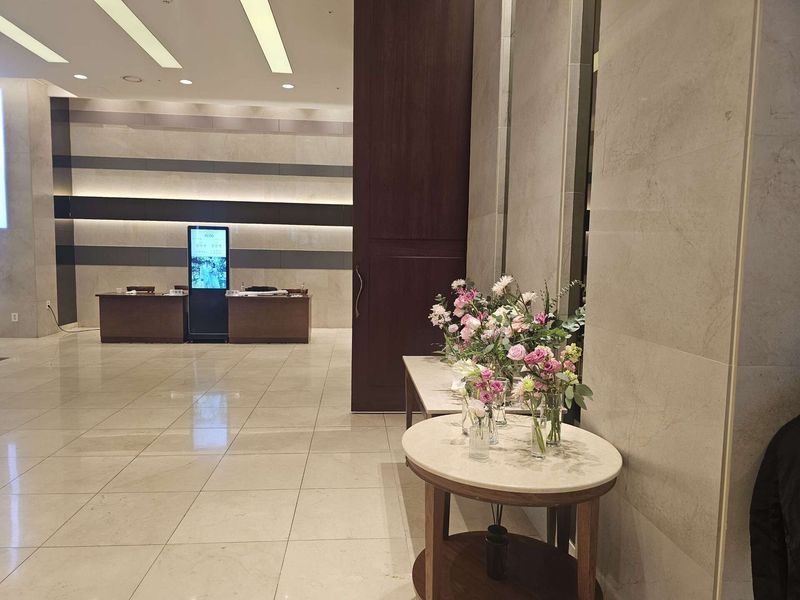 기대보다 미치지 못하는 부분은 없었습니다. 군더더기 없고 깔끔하고 무엇보다 홀에 들어갔을 때 나는 생활 향이 인상적이었습니다. 저희는 1년 후 오픈일 맞춰 날짜를 예약했는데 시간 변경할려고 연락드리니. 이미 점심 시간대는 모두 마감이 됐네요 다만 겨울 예식에 신부대기실에 나는 꽃향기는 개선이 되었으면 좋겠습니다. 홀분위기 : 추천♥ 제가 투어간날 다른 팀도 투어를 많이보러왔었고 비수기임에도 예식이 끊이지않더라구요 실제로 가보니 인기 많은 홀인게 체감이되었습니다 음식 : 추천♥ 일단 식대 안에 음료가 포함되어있는게 맘에 들었고 번잡하지않고 정갈하게 플레이팅 되어있는게 좋았습니다 연회장안에 들어가도 음식냄새 많이 나지않고 청결했어요 음식은 안먹어봤지만 확실히 퀄리티 좋아보였습니다 서비스 : 추천♥ 당일계약혜택했었고 직원분이 친절했습니다 그리고 카톡으로 한달동안계속 궁금한것 물어보는데 빠르고 친절히 응대해줘서 좋았습니다.