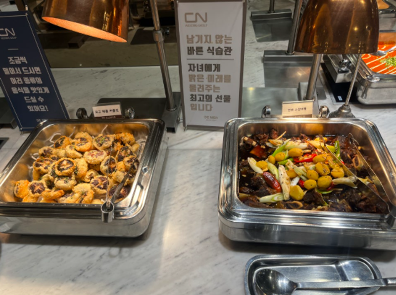 지난 주말 예식장을 알아보는 과정에서 계산 CN웨딩홀 시식을 다녀왔습니다. 처음 방문하기 전에는 단순히 위치와 교통만 고려했었는데, 막상 직접 가보니 홀의 분위기, 직원분들의 안내, 그리고 무엇보다 음식의 퀄리티가 예비 신랑신부로서 큰 영향을 주더군요. 결혼식은 신랑·신부만의 날이 아니라 양가 부모님과 하객들이 함께 즐기는 자리이기 때문에, 음식이 만족스러워야 예식 전체에 대한 인상도 좋아진다고 생각했거든요. 그래서 이번 시식은 정말 꼼꼼하게 살펴보았습니다. 먼저, 홀 분위기부터 말씀드리자면 생각보다 훨씬 깔끔하고 세련된 인테리어였습니다. 로비 공간은 화이트 톤에 포인트 장식이 적절하게 들어가 있어서 사진 찍기에도 좋았고, 하객들이 기다리는 동안 답답하지 않게 여유로운 공간감이 있었습니다. 홀 내부는 조명과 천장 장식이 잘 어울려서 결혼식 분위기를 한층 고급스럽게 만들어주었고, 버진로드 길이가 적당해서 신부 입장 시 예쁘게 연출될 수 있을 것 같다는 생각이 들었습니다. 무엇보다도 단상 구조가 안정감 있게 되어 있어, 어떤 드레스를 입어도 잘 어울릴 것 같았어요. 이제 가장 중요한 시식 후기를 말씀드리겠습니다. 계산 CN웨딩홀의 식사는 뷔페 스타일로 제공되었는데, 생각보다 종류가 정말 다양했습니다. 흔히 웨딩홀 뷔페라고 하면 메뉴는 많지만 맛이 무난하거나 평범한 경우가 많잖아요. 그런데 이곳은 신선도와 맛 모두 기대 이상이었습니다. 메뉴 구성을 살펴보면, 먼저 전채 요리로 샐러드와 에피타이저 종류가 여러 가지 있었는데, 특히 연어 샐러드와 카프레제가 신선하고 깔끔했습니다. 해산물 코너에서는 새우, 훈제연어, 초밥, 회가 준비되어 있었는데 해산물 특유의 비린내가 전혀 느껴지지 않아 부모님께서도 칭찬하셨어요. 고기류도 정말 인상 깊었는데, 소고기 스테이크와 LA갈비가 가장 인기였습니다. 스테이크는 미디움 정도로 구워져 있었는데 육즙이 살아 있어서 웨딩홀 음식이라고 믿기 어려울 정도였고, 갈비도 양념이 과하지 않아 어른들도 부담 없이 드실 수 있었습니다.
