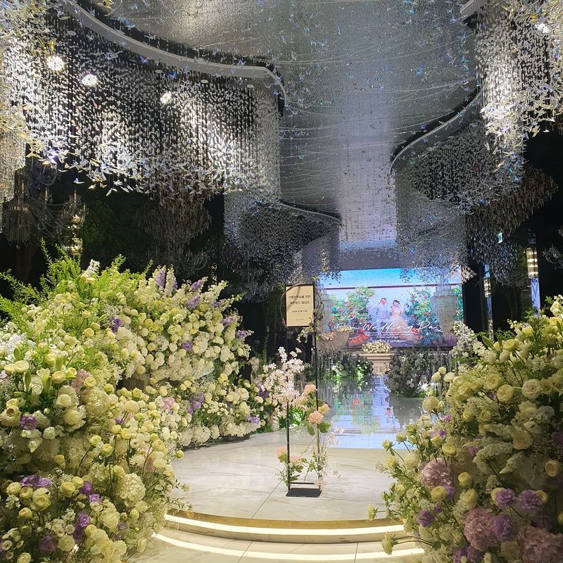 가든홀 층고는 좀 낮은편인데 야외예식 느낌 낭낭한 실내장식에다가 문열면 실제 야외로 이어지는 주례석까지 있어서 야외결혼 희망하시는데 날씨가 걱정이다 하시는분들께는 좋은 대안인 것 같아요! 그리고 생각보다 컨벤션홀이 고급미 낭낭해서 저 강경 밝은홀 파인데 조금 흔들렸어요! 장점: 청량리역이랑 진짜 가까워서 교통걱정은 없다! 단점: 밝은홀 층고가 조금 아쉬웠고, 단독건물이 아니라서 웨딩홀 찾아가는 길이 이길이 맞나 싶은 의문이 계속든다.