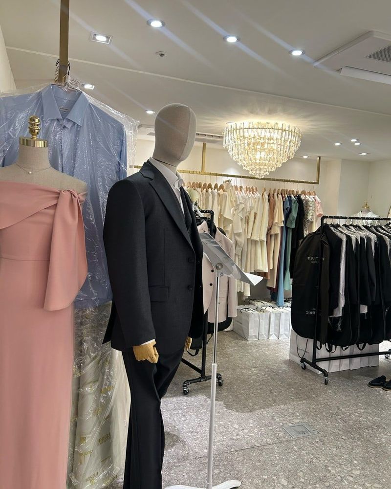 슈트패브릭 렌탈센터에서 예복 대여계약했습니다. 드레스를 르블랑 웨딩에서 진행했는데 드레스샵이랑 몇걸음 떨어져 있지 않아서 너무 편리하게 다녔네요~! 상담도 친절하게 해주시고 사이즈도 꼼꼼히 봐주셨어요. 슈트 종류도 다양하고 사이즈도 넉넉히 있어서 부담 없이 입어봤습니다! 대여인데도 질도 좋고 관리도 잘되어 있어 새것 같은 느낌이 났어요 상담은 프라이빗하게 해주시고 피팅실이 여러개 있어서 대기 없이 잘 진행했습니다. 촬영때 다양한 악세서리 챙겨주셔서 잘 이용했습니다. 반납도 대면 없이 샵 밖에 바로 반납하면 되서 너무 편리했습니다.! 본식 전에 사이즈 재피팅도 가능해서 체형이 많이 변하게 되도 걱정없을듯 합니다. 2부 드레스도 대여가 가능해서 구경해보셔도 좋을 듯 합니다. 아스터(?) 님 감사합니다.~!