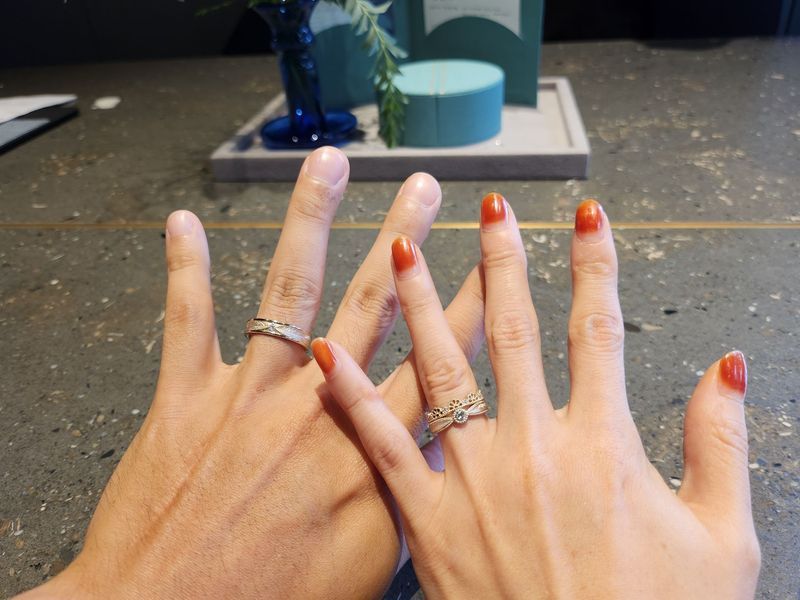 홈페이지에서 미리 구경했다가 매장 상담 받기도 전에 홀려버린 소그노 💍 자연을 담은 섬세한 디자인과 따뜻한 색감, 그리고 고급스러운 인그레이빙 서비스까지 모두 제 기준에 맞아서 계약하게 되었어요! 특히 여자 웨딩밴드는 충분히 사랑스럽고 여성스럽게, 남자 웨딩밴드는 너무 투박하지않고 부드럽게 된 디자인이 저와 예랑이의 추구미에 가장 적합했습니다. 예물투어를 하면서 다른 예물샵도 3군데 상담받았는데 대부분 남자 웨딩밴드가 투박하고 심심하게 디자인되어서 저희 마음에 들지않더라구요 😭 그러던 중에 남자 웨딩밴드도 섬세하게 디자인된 소그노에 마음을 빼앗겨 결국 최종 계약했습니다. 상담을 해주시는 공간도, 디자이너님께서도 따뜻하고 고급스러운 느낌을 주어서 상담받기에 부담스럽지않고 존중받는 느낌이 들었어요☺️ 섬세함과 유니크함을 추구하는 예신 예랑분들께 추천합니다 🤗