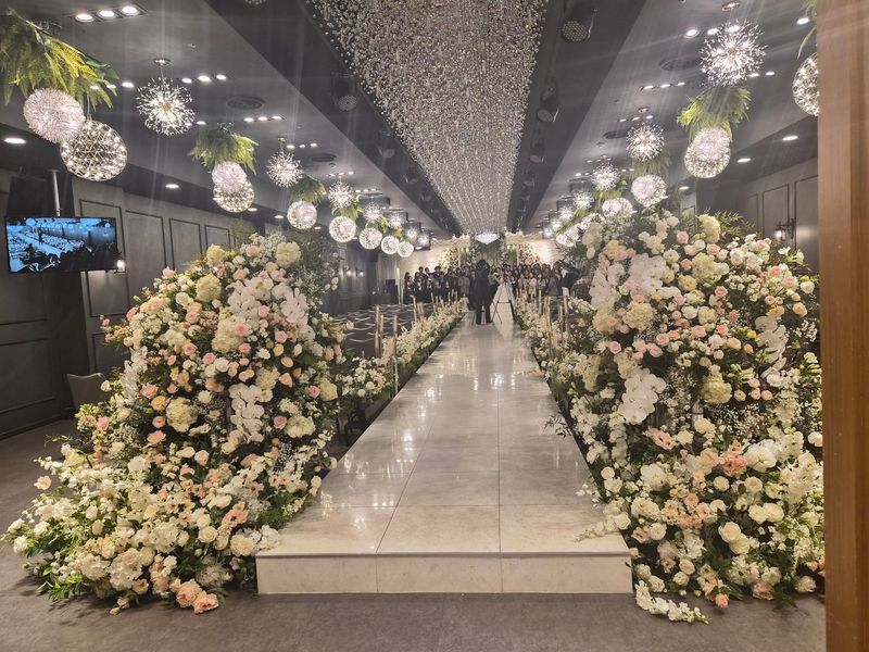 상담해주시는 분이 엄청 친절하십니다. 상담받는동안 최대한 저희가 원하는 사항들 맞춰 계약 진행해주셨습니다 :) 사진으로 봤을 때는 꽃장식이 조금 과하거나 부담스럽지 않을까 걱정했었는데, 실물로 보니 훨씬 이쁘고 고급스러웠습니다. 직접 방문해보시는거 추천드려요. 주차장도 넓고 위치도 더블역세권에 역에서 매우 가까운곳에 있습니다. 홀 투어시 뷔페도 한번 구경했는데 음식 종류도 다양하고 다 맛있어보였습니다. 연회장도 넓고요. 마음에 들어서 투어 후 당일계약 완료했습니다 ㅎㅎ