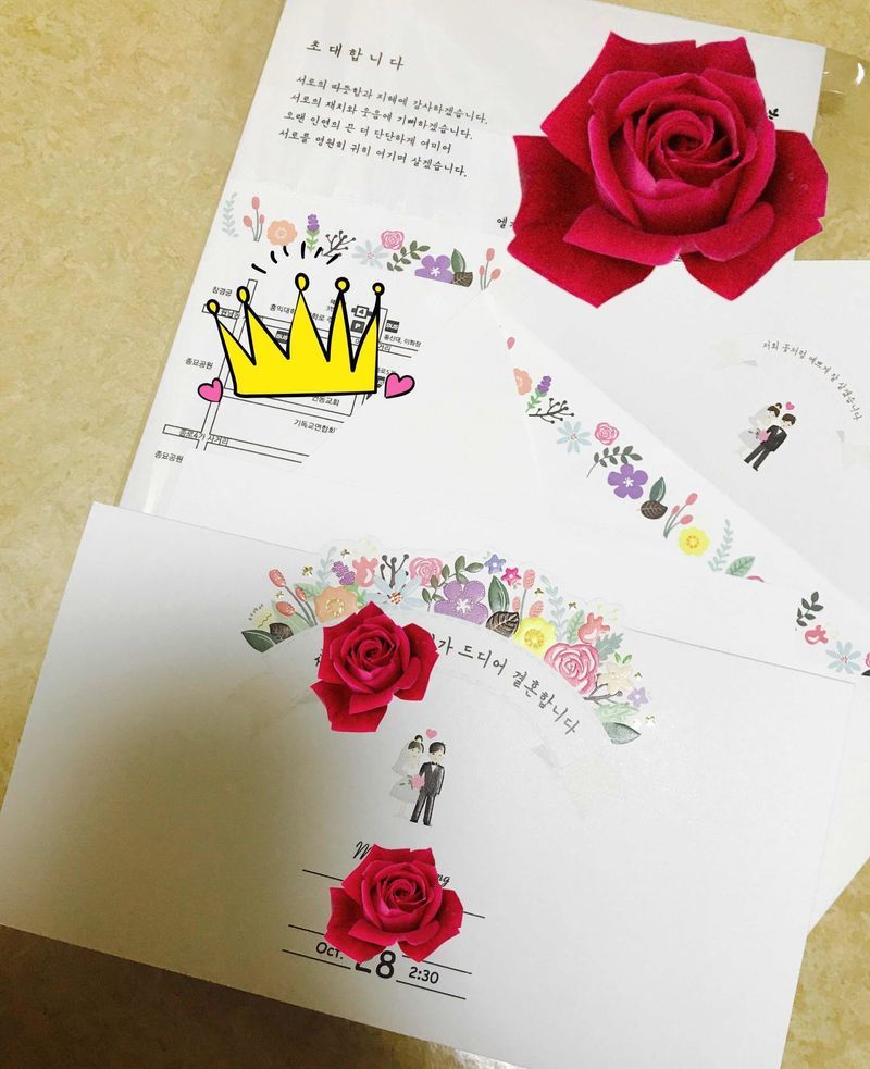 저는 어차피 한번 보고 버리거나 처박힐 청첩장에 그렇게 돈 많이 들이고 싶지 않았거든요. 다행히 예랑이도 제 의견에 동의해줬고요. ㅎㅎ 저렴하게 청첩장 하고싶으신 분들에게 완전 강추에요! 디자인 : 추천♥ 디자인이 다양해서 굉장히 맘에 들었어요. 고급진 디자인부터 심플한 디자인까지~ 저는 심플한 게 좋아서 귀여운 스타일로 고르긴 했는데 선택의 폭이 넓어서 고민 좀 했네요^^;: 가격 : 추천♥ 저는 플래너한테 15% 할인쿠폰 받은 게 있어서 더 저렴하게 했어요. 그런데 품질도 괜찮더라구요! 저렴해보이지 않아요 절대. 다들 저희 커플이랑 잘 어울리는 디자인이라 하네요^^ 서비스 : 추천♥ 3번 정도 시안 수정요청했는데 바로 반영해주시고 디자인 해주시는 분이 정말 엄청 친절하셨어요. 그리고 후기 올리면 무료로 식전영상 제작하는 쿠폰주고 회원가입하면 모바일청첩장 무료 쿠폰도 줘요~ 청첩장에 돈 많이 들이지 않고 싶은 예신예랑들께 강추입니다ㅋ