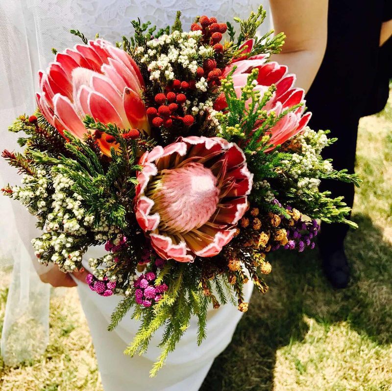 사진으로 봐도 아시겠지만 보통 사람들이 보면 잉? 이게 뭐야? 할거예요. 저도 이 부케 결정하면서 친정엄마도 "제발 남들하는 예쁜 꽃 해라" 하시고 신랑도 계속 만류하도, 친구들 몇몇도 "......응?"하는 반응이었는데 결과적으로 예식날 모두들 예쁘다고 칭찬 일색이었습니다. 물론 야외예식이었고 드레스마저 블링블링한 스타일이 아닌 레이스에 시스루까지 들어간 드레스였기 때문에 잘 어울렸다고 봅니다^^ 부케 : 추천♥ 프로테아부케. 스타일이 아주 유니크합니다. 저는 야외예식이다보니 특이하면서도 흔히 볼 수 없는 부케를 하고 싶었어요. 가격 : 추천♥ 예식 올린 지 조금 지나 정확한 가격은 기억이 나지 않는데 저는 부케에 큰 돈을 들이고 싶지 않아 중저가 위주로 봤는데 개인적으로 저는 가격 대비 품질 100% 만족이었어요. 서비스 : 추천♥ 아무래도 일반적인 부케와는 약간 다른 스타일의 부케이기 때문에 모험이라고 생각했어요. 그래서 더 걱정도 많았는데 업체분들이 상담 잘 해주셔서 안심하고 결정했네요. TIP : 나는 평범한 부케는 싫다! 야외예식 예정이다! 하시는 분들께 추천해봅니다. 단, 부케에서 초록색 잎 같은 것들이 계속 떨어질 수 있어요. 신부대기할 때 드레스 위로 계속 떨어졌는데 전 완성된 부케가 너무 마음에 들어서 "어? 뭐지?"하고 손으로 계속 쓱쓱 털었어요 아무렇지 않게^^