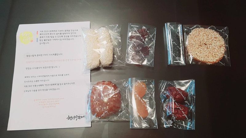 무료 시식할 폐백 음식 포장이 꼼꼼해서 한 번 놀랐어요! 보내준 폐백 시식 음식 모두 다 개인적으로 너무 만족이였어요 약과가 부드러우니 어르신들 먹기에 제격일 거 같아요 말린 살구도 있는데 새콤달콤하고 부드러워서 좋았어요^^ 한과 역시 눅눅하지 않아서 좋았어요 가격 대비 구성 만족도에 다시 한 번 놀랐어요^-^ 많은 예신님들이 추천하고 많이 이용하는 이유를 알겠더라고요 예식이 내년 4월이라 아직 주문은 안했지만 폐백 음식 주문은 '천년 사랑'에서 할 것이기에 여기서 주문할거예요 개인적으로 추천합니다^-^ 구성 : 추천♥ 폐백 무료 시식 이용했어요 가장 기본적인 걸로 할 예정이고요 시댁에서 비싼거 할 필요 없다고 미리 말해줬어요! 가격 : 추천♥ 내년 4월 예식이긴 한데 웨딩북에 열심히 적립한 '적립금'으로 무료 폐백 음식 주문했어요 아직 주문은 하지 않았지만 아는 지인분 통해 알게된 곳이라 구성과 가격 대비 전 추천해드리고 싶어요^^ 서비스 : 추천♥ 추석 명절 앞두고 시식 주문한거였는데 생각보다 일찍 받을 수있게 해주셔서 감사했어요 그리고 문자로 배송 알림도 해주셔서 너무 만족했어요^^