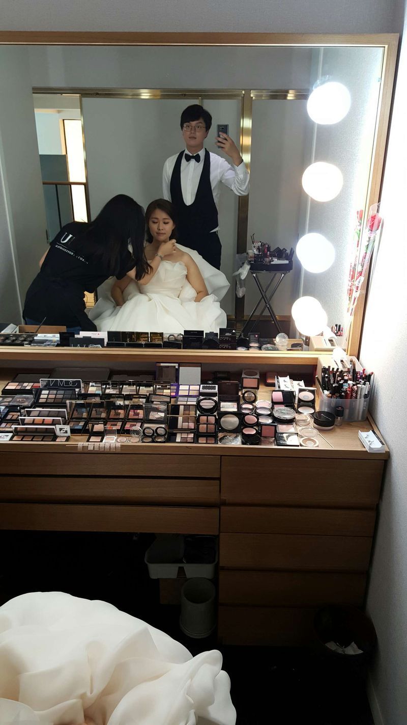 출근길에 멀둥멀둥 가느니 후기를 하나씩 써볼까해요 !! 꼭 스벅 기프트콘이 탐나서는.. 맞습니다 ㅋㅋ 오늘은 알루 이야기를 해볼까해요! 저희는 스튜디오는 거의 정했는데 드레스 메이크업은 진짜 진짜 모르겠더라구요. 드레스는 그나마 사진 보고하면 감이 조금 오는데 메이크업은 정말 그냥 다 예쁘기도하지만, 업체이름 자체를 찾는게 어려웠어요. 그러한 이유로 스드메 패키지에서 추천 받은 메이크업 업체로 진행했습니다. 그전에 몇몇 플래너분들과 이야기하면서 들은 메이크업 업체도 많이 봤지만 어디하나가 월등히 우수하다는 잘 몰랐어요. 저흰 부원장급을 배정해주신다는 말만 듣고 막연히 부원장이라는 타이틀로 찾아보니 서옥부원장님이 검색되었는데 화장이 엄청 예뻐서 잘 되었다고 안도했어요. 그런데 !! 우린 서옥부원장님이 아니라 수진부원장님이었어요 ! 요즘은 종종 검색되던데 처음에 찾을 땐 잘 없어서 안타까웠지만 두분다 잘하신다는 말만 믿고 갔습니다. 서론이 엄청 길었네요. 찾아볼 때 이런글도 있었으면 좋을것 같아서 주저리주저리 작으니 쓸데없어보여도 이해해주세요. 드디어 15일 아침 일찍 (아빠)차를 타고 알루에 도착했습니다. 제가 차가 없어서 짐을 다 보관해야하는데 친절히 잘 받아주었어요. 사물함 열쇠도 두개 받았네요 ㅋ 여성분들은 분주히 여기갔다가 저기갔다가 바쁘시고 남성분들은 대기석에서 핸드폰 하시느라 바쁘시더라구요. 8시반에 바로 저를 불러서 기초화장해주었어요. 신기해서 이건 뭐하는거냐고 물으니 로션바르는거라고..ㅜㅜ 태어나서 처음으로 눈썹정리도해보고 눈썹도 그려보고 로션도 잘 들어가라고 토닥토닥해주시고 신기했어요. 피부톤 정리까지 끝내고 대기석에서 기다리라고 하더라구요. 대기석에서 기다리기 지루해서 예신 머리하는데 찾아가서 머리하는거 봤는데 고데기?로 머리 말아주는데 나름 머리 많이 길었다고 생각했는데 금방 짧아지더라구요. 그래서 헤어피스가 있어야겠구나 싶었어요. 저희는 지인이 동네 미용실하시는 분이 계셔서 헤어피스 빌려왔었어요. 헤어피스 가격이 16만이고 반납하면 5만원 돌려받는거였는데 아깝다거 생각해서 빌려갔었어요. 헤어 담당자분도 흔쾌히 괜찮다고했고 완전 풍성하진 않았지만 나름 풍성히 머리 나왔어요. 헤어피스 가져가면 스타일링 비용을 지불하는데 5.5만이었어요. 머리하는거 구경하면서 안내데스크에 있던 석류주스, 망고주스, 아메리카노, 간단한 빵 등을 먹으면서 놀고 있는데 드디어 제 머리 해준다고 했어요 ! 머리는 평소 제 머리스타일과 비슷하게 해주었어요. 특별히 그 날 다르게하면 나중에 사진 볼 때 어색하다고 하더라구요. 그리고 머리 내렸는데 너무 단정히 내리면 사진 찍으면 그냥 쌔까맣게 색칠한 것처럼 나온다고 자연스럽게 만들어주었어요. 약간 자연스러운 헝크러짐이라고해야하나.. 사진 찍으면 잘 나온다고 하니.. 머리를 끝내고 예신 화장하는거 구경하면서 시간 보냈는데 순수 부원장님이 웃으시면서 화장 잘 해주셨어요. 화기애애했던 것 같아요. 시간 되어서 옷 갈아입고 머리 마지막으로 해주는데 옆머리 너무 떠서 긴 삔 같은걸로 옆머리 누르고 스튜디오까지 이동했어요. 머리가 길다며 당일 알루에서 커트도 가능하니 담에 필요하면 커트까지 예약할 수 있대요. 일요일이라 그나마 한산하다 했는데 사람이 많긴했는데 번잡하다는 느낌은 없었어요. 헬퍼 이모님이랑 옷 갈아입을 때 시간적으로 컨트롤이 없었긴 했는데 이모님 재량으로 옷 입긴했어요. 스튜디오까지 택시타고 이동하는데 짐도 다 챙겨주고 친절했습니다. 주저리주저리 적었는데 도움 되었는지 모르겠어요. 지하철 내려야해서 급 마무리했네요. 질문은 댓글 달아주세요!! 스타일 : 추천♥ 화장을 우선 엄청 잘 해줬어요 ㅋㅋ 분위기도 좋아서 메이크업부터 사진 찍으시는 분들이 많았어요 담당샘 : 추천♥ 계속 웃으시면서 화장해주셨고 결과물도 만족 ! 서비스 : 추천♥ 짐이 많았는데 잘 보관해주고 택시까지 옮겨주고 피스챙겨갔는데도 흔쾌히 머리 예쁘게 만들어주셨어요. TIP : 맞다. 거기서 옷 갈아입으니까 버튼식 남방같은거 입고 가야해요 남자는 런닝도 입으면 안 됩니다 ! 헤어피스 챙겨가도 괜찮으니 지인 혹은 단골 미용실에게 문의해보세요 !