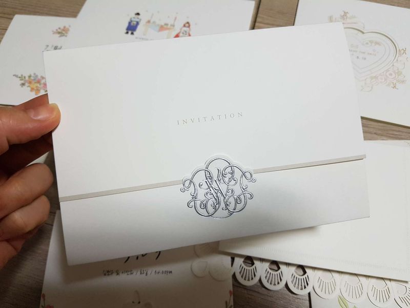 이걸로 결정했어요 배송 2일 걸려서 금방왔어요ㅋㅋ신기 400장이 이렇게빨리올줄몰랐음.. 간단해서 그런가봐요 ㅡ.ㅡ;;; 받으신분들 반응은 깔끔하고 이쁘다, 간단하고예쁘네 하며 한마디씩 칭찬 하셨어여 디자인 : 추천♥ 깔끔한거 아주~~깔끔한걸 원했어요 샘플받고 바로결정했어요 가격 : 추천♥ 400장 171000 인가? 아주 저렴하게 했어요 종이도 단단하고 고급스러워요 서비스 : 보통♥ 딱히 친절할것도 불친절할것도 없어서 그냥 그랬어요 디자인 초안작성하면 확인했다고 문자오고 결제하면 배송이 와요ㅋ