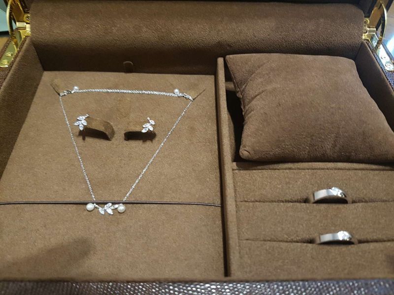 실물이 훨씬 예쁜데 사진에 담지 못해 안타까워요. 제가 무광을 좋아해서 둘 다 무광으로 맞췄는데 이게 가운데있는 다이아를 더 빛나게 해주네요! 기대하던 반지 기대이상으로 예뻤고 팬션세트도 넘 아기자기하고 여성스러워요. 둘이 반지 끼고 헤벌쭉하며 나왔습니당 디자인 : 추천♥ 심플한 것 부터 화려한 것 까지 굉장히 다양하고 이뻤어요. 정말 여러가지라서 웨딩밴드 고를 때 진짜 많이 고민했어요..ㅋㅋ 다 이뻐서!! 품질 : 추천♥ 오늘 받았는데 생각보다 훨씬 이뻐서 행복했어요!! 평생가는 결혼반지인만큼 꼭 좋은거 해야겠다 싶었는데 딱이에요ㅎㅎ 서비스 : 추천♥ 친절하게 하나하나 다 설명해주시고 반지 받아볼때도 섬세하게 다뤄주셨어요. 그리고 정말 예쁜 티아라, 헤어 밴드, 귀걸이 등등 다 빌려주셔서 좋았습니당!