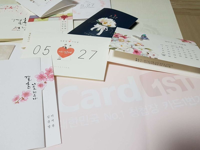 이쁜게 너무 많아서 고르기가 힘들었네요 그래도 선택은 해야해서 신랑신부 그림이 들어간걸로 초이스~ 디자인 : 추천♥ 여러곳 비교해보았는데 카드1번가 상품들이 재질도 좋고 이쁜디자인과 종류도 다양해서 선택의 폭이 넓어서 좋아요. 예비신부와 상의해서 하나를 선택했는데 심플하면서 깔끔한걸로 택했습니다. 이제 문구를 선택해야 하는데 참 어렵네요ㅎㅎ 예신님들 주저하지마시고 샘플먼저 신청해보세요.^^ 가격 : 추천♥ 가격대비 고급집니다~행사할인품들도 있어서 부담없이 선택도 가능하네요. 서비스 : 추천♥ 배송빠르고 구매량에 따른 할인율도 있고 다양한 서비스를 받을수있네요 우선 주문전이라 할인쿠폰 서비스먼저 받아볼려구요.