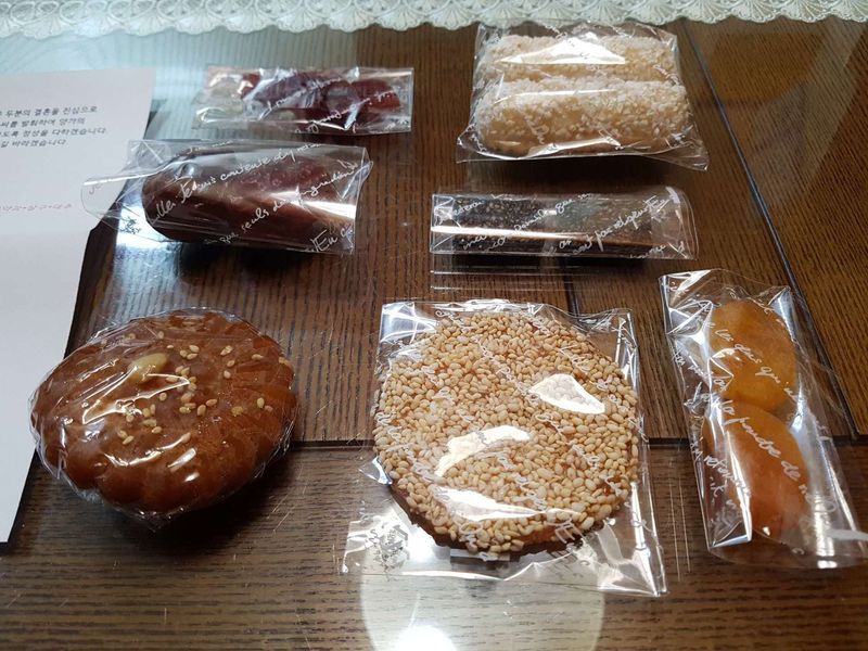 두곳 비교해봤는데 사실 거의 비슷했지만 육포랑 한과가 다른 업체대비 별로였어서 다른 업체로 선택했네요. 하지만 다른 메뉴들은 비슷한 편이니 샘플 드셔보시고 취향에 따라 선택하시면 좋응거같아요! 구성 : 보통♥ 샘플 신청해서 시식해봤는데 배송이 빠르고 맛도 괜찮았어요 ㅎㅎ 특히 깨강정이랑 약과! 약과가 많이 안달아서 부모님이 좋아하시더라구요 근데 육포가 좀 얇아서 아쉬워요ㅠ 가격 : 추천♥ 아무래도 웨딩북 연계업체이다보니 가격면에서 혜택을 보는것 같아요 ㅎㅎ 서비스 : 추천♥ 배송이 빠르고 안내문자도 친절히 잘 보내주셨어요 ㅎㅎ
