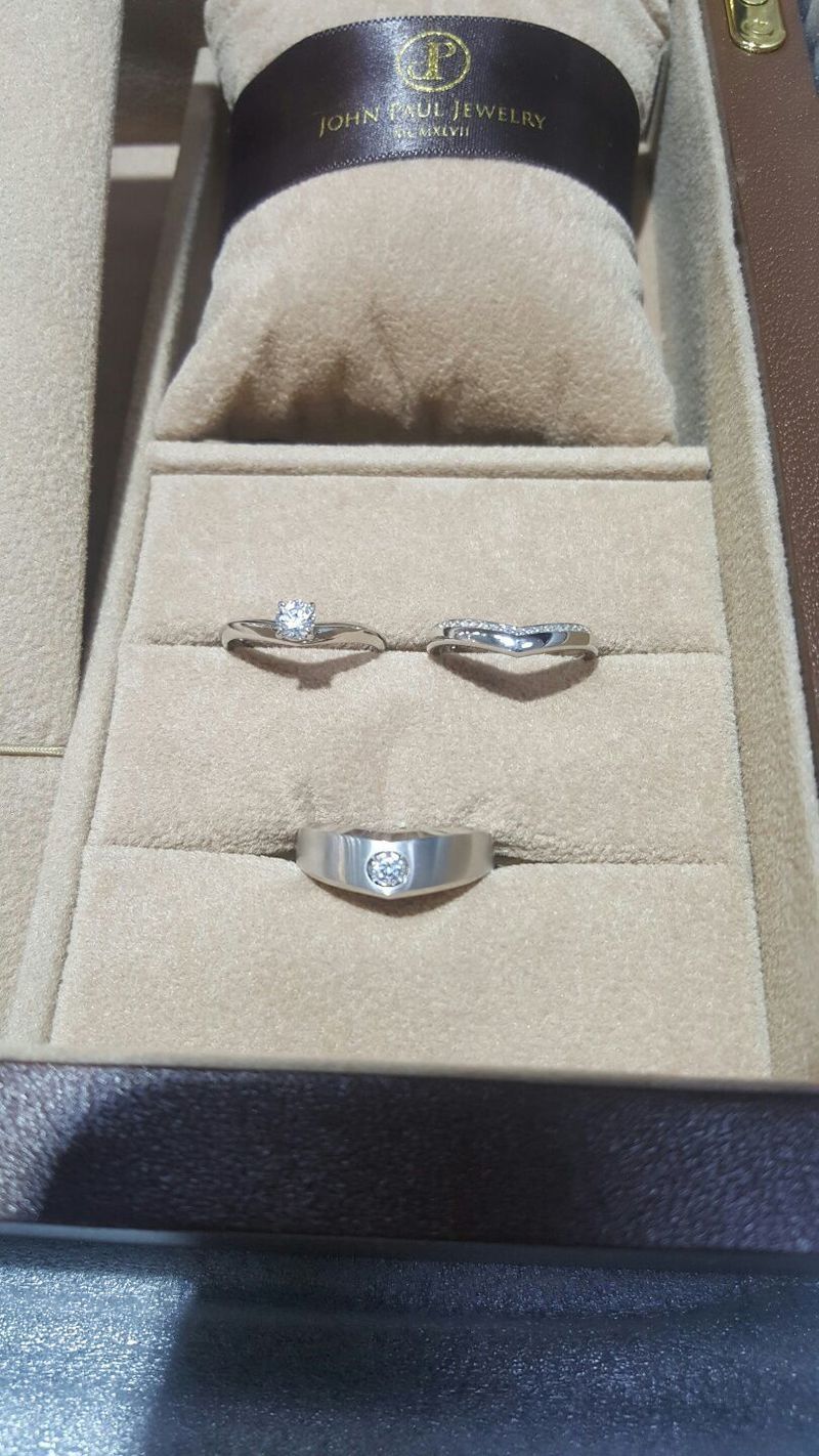 예물 어떤걸로 할지 정말 폭풍 검색했어요. 연애기간동안 따로 커플링도 안했던지라 커플링은 꼭 하고싶었거든요 ㅋ 그런데 예물 디자인들이 커플링 중에서는 다 나는 커플링이다 이런 디자인이 대부분이더라구요. 제가 고른 다이아 커플링세트는 그렇지 않아서 골랐어요. 신랑 반지는 깔끔하고 심플해서 데일리로 끼고 다니기 편한 디자인이고 저는 커플링 같은 느낌보다는 고급스러운 싱글링 느낌나는 우신3부 다이아로 했어요. 끼고 있으면 제 다이아 반지만 따로한느낌!! 아마 가드링 효과인거같아요~ 할까말까 고민했는데 하길 잘한거같아요~~ 예물 알아보다보니 가격따라 우신이냐 아니냐도 있던데 존폴쥬얼리는 기본이 우신/GIA 다이아몬드라 안심하고 구입했어요!!! 언능 끼고 다니고 싶어요~~^^ 디자인 : 추천♥ 흔하지 않은 디자인 너무 마음에 들었어요~ 이쁜 반지 많아서 고르느라 애먹었어요. 커플링 같지 않은 고급스러운 디자인에 반했어요. 품질 : 추천♥ 옵션이 아니라 기본으로 우신/GIA 다이아로 정찰제 판매라 너무 좋았어요. 정찰제라 더 저렴하고 품질은 믿을 수 있어 더욱 기분좋게 구입했어요. 서비스 : 추천♥ 제 스타일 쓱 파악하시고 제취향으로 탁탁 추천해주셔서 너무 좋았어요. 이거저거 대충 추천하는 느낌이 아니라 너무 좋았어요.