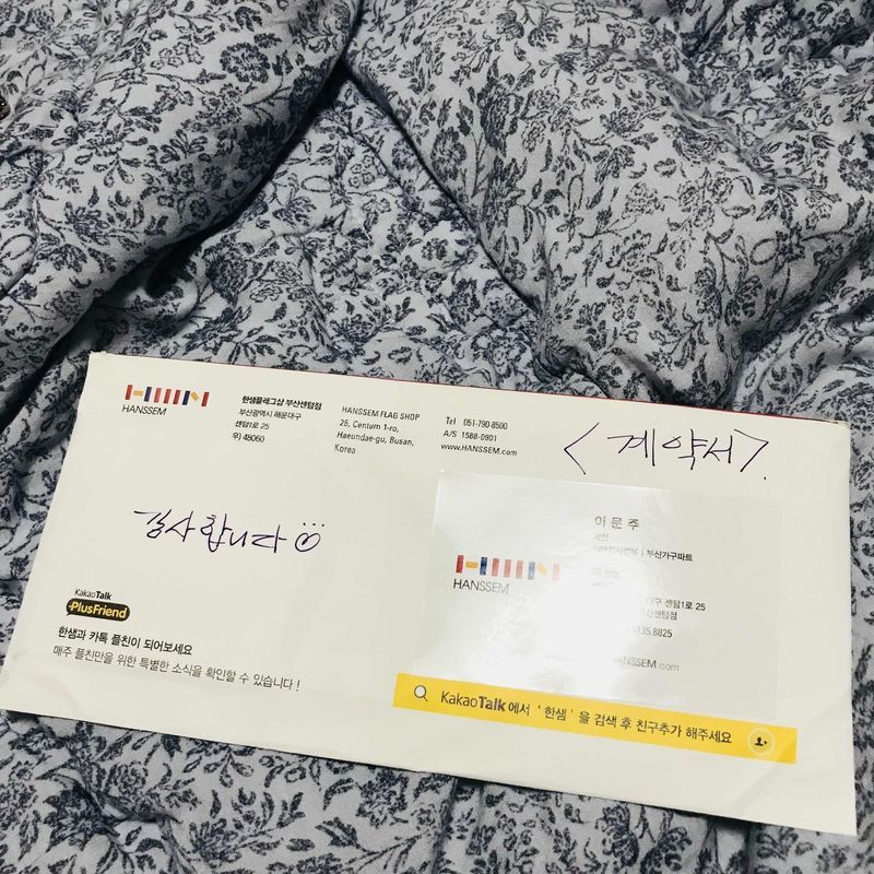 가구파트의 계정님께서 응대해주셨는데, 친절하게 응대해주셨습니다. 원래는 다른 상품을 구매하려고 했는데, 상품 설명을 매우 잘해주시고 친절하셔서 당사 제품을 구매하기로 결정하였네요. 다른 한샘 플래그쉽 스토어에도 방문하였지만, 센텀점만큼 친절함은 느끼기 어려웠습니다. 구매 후 확인 전화까지 주셔서 더욱 기분이 좋았습니다. 다른 가구 또는 생활용품 역시 한샘에서 구매할 예정입니다. 상품 : 추천♥ 1. 침대 프레임: 유로 601 그레이 침대 K 수납형 >헤드가 자동으로 올라오는 디자인이어서 편하게 앉아서 독서 등이 가능하고, 매트리스 하단에 수납이 가능한 점이 편리해보여 구매하였습니다. USB 단자가 내장되어 있어서 핸드폰 충전에도 용이한 점이 좋아서 구매하였습니다. 2.매트리스 : 유로 502 매트 올시즌 스프링 K 기기포함 >라텍스와 스프링 매트리스 혼합형으로 편안하면서도 내구성이 좋아보였어요. 경동 나비엔 온수매트가 내장되어 있어 편리하고 더위를 많이 타는 예랑을 위해 매트리스 반대쪽에는 쿨매트가 내장되어 있는 점이 매력적였습니다. 온수매트는 당연히 양쪽 따로 조절이 가능하였습니다. 가격 : 추천♥ 웨딩북 프로모션으로 청첩장 또는 웨딩홀 계야서 제시로 신혼 5%할인을 받았습니다. 그리고 롯데카드 행사로 300만원 이상시 필립스 스팀다리미, 필립스 핸드블렌더 세트 그리고 또 한가지, 총 3가지중 한가지 상품을 증정해주는 행사가 있어서 핸드블렌더를 받았습니다. 500만원, 700만원 단위로 사은품을 증정해주니 참고하세요. 서비스 : 추천♥ 매우 친절하고 혜택 설명 역시 잘해주셨습니다.
