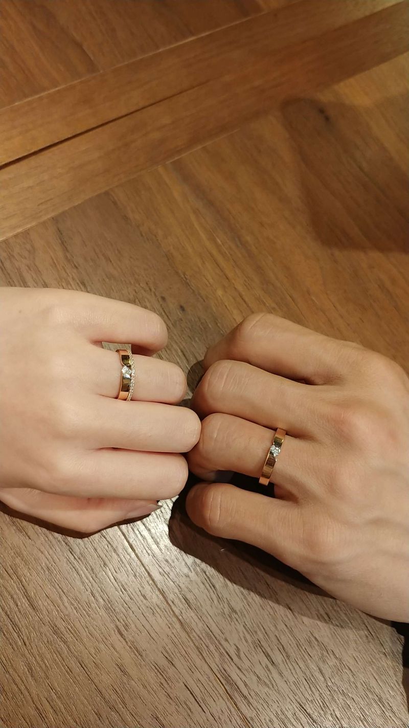 종로도가보고 백화점도 가봤지만 제손에 어울리는 디자인은 예랑이가 안어울리더라구요...근데 여기는 저랑 예랑이에게 모두 어울리는 색감과 디자인ㅋㅋ그리구 합리적인가격!!정말 보자마자 바로 계약했어요 ㅋㅋ실제 받아보았을때도 넘 예뿌고 빨리 끼고싶을정도랍니다 ㅋㅋ하지만 아직 기스날까봐 고이 모셔두고있는중..ㅋㅋㅋ 디자인 : 추천♥ 우선 반지가 예랑이랑 제손에 너무잘어울려서 결정했어요 ㅋㅋ가격도 프로모션기간이라 할인많이되구 큐빅을 다이아로바꿔도 가격이 합리적이더라구요 ㅋㅋ가드링까지하니 넘예뻤어요!! 품질 : 추천♥ 백화점에서 구입한거라 품질은 믿을만하구 품질보증서까지 주셔서 언제든 AS가능합니다~!그리구 디자인이 심플한데 딱 예물스럽지도 않은느낌이라 넘 만족스러워요 ㅋㅋ넘 예물느낌나는건 끼고다니기 좀부담스럽더라고여~~ 서비스 : 추천♥ 넘 친절하게 설명해주셨고 추천도 많이해주셨어요 ㅋㅋ많이 껴보면서 저와예랑이에게 딱어울리는!!색감과 디자인을 찾아서 넘 뿌듯해여