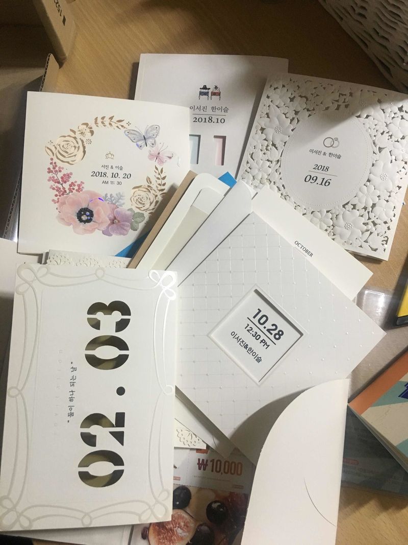 샘플 주문하면 하루만에 도착 청접장 안에 넣을 맨트도 다양해서 금방 골랐고 초안 후에 수정작업도 하루만에 다 해주네요~ 넘 편하고 잘 나와서 만족해요^^ 디자인 : 추천♥ 디자인 많고 깔끔해서 맘에 들었어요 샘플도 10개 신청했는데 최근 잘 나가는것들로 더 챙겨서 보내주셨더라구요~ 가격 : 추천♥ 삼백장 넘어가니까 오십장 단위로 가격차이가 크지 않아서 걍 400장 했어요~ 20만원쯤 나왔구용 서비스 : 추천♥ 샘플 신청하니까 하루만에 와서 좋고 샘플도 여러개 더 넣어주셔서 다양했고 신청하고 초안도 하루만에 완성 청접장 찍는게 엄청 쉬웠네요 ㅋ