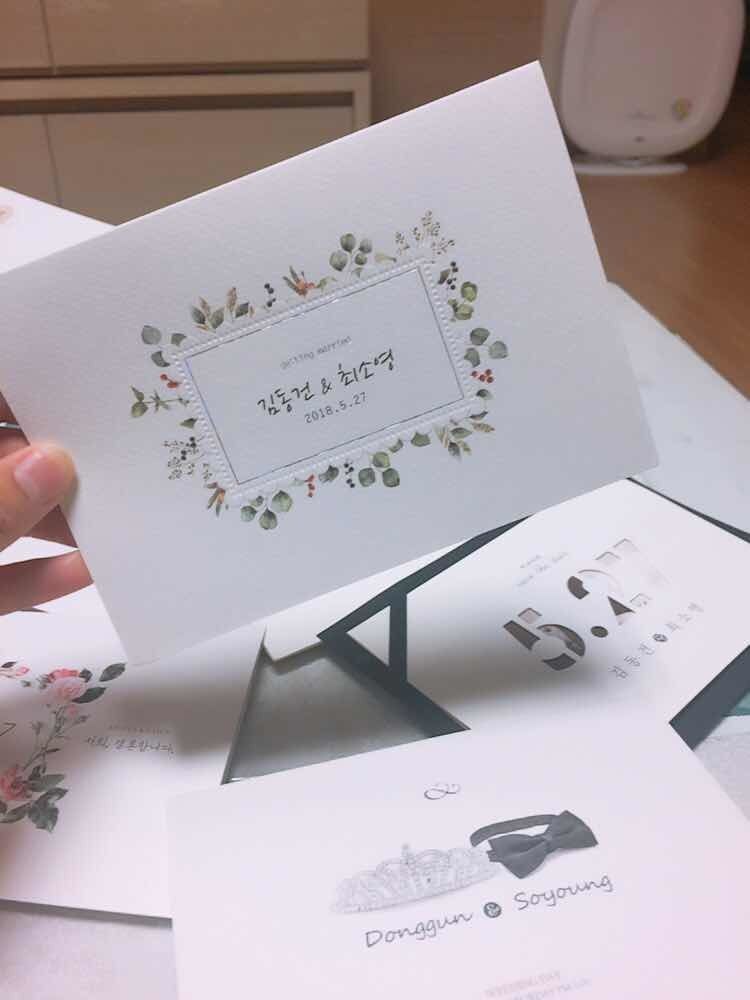 박스부터 이미 열어보지 않으면 후회할것같은! 청첩장 디자인 대박의 박수를♥♥ 너무옢서서 선택장애온 1인입니다. 이벤트신청도하고 타업체는 식전영상 거의 할인인데 무료라는게 대박이였죵 여기로결정하려고합니다 디자인 : 추천♥ 너무너무 마음에 들고 샘플이라고 대충이아닌것에 감동입니다. 가격 : 추천♥ 200매내지 250매하려하는데 디자인과 재질 봉투 서비스 모두 가격대비 이상으로 뛰어납니다- 서비스 : 추천♥ 배송과정은 베리굿~ 서비스또한 샘플의 다양성으로 좋아요