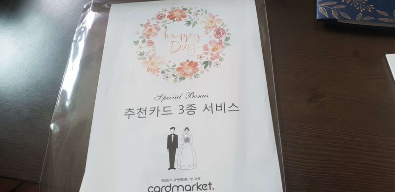 심플하고 이름이 강조되는 청첩장을 원하신다면 이곳을 추천해요! 추천카드 3종을 서비스로 보내주셨는데 서비스로 받은것중에도 마음에 쏙 드는게 있었어요. 그리고 무엇보다 속지가 다양한 봉투를 잔뜩 보내주셨는데 봉투까지 너무 예뻐서 마음에 드네요^^ 디자인 : 추천♥ 제가 가장 추구했던 이름이강조되고 심플한 스타일에 청첩장이 가장 많았아요. 가격 : 추천♥ 청첩장 종이가 두껍고 질이 가장 좋았어요! 서비스 : 추천♥ 샘플시키고 정말 바로 다음날에 도착해서 깜짝놀랐어요